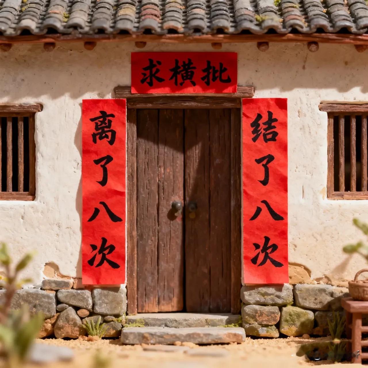 这个横批我觉得写屡战屡败比较好,但是老公却觉得这个横批写再结再离比较好,朋友们,你们说说这个横批到底怎么写比较好?