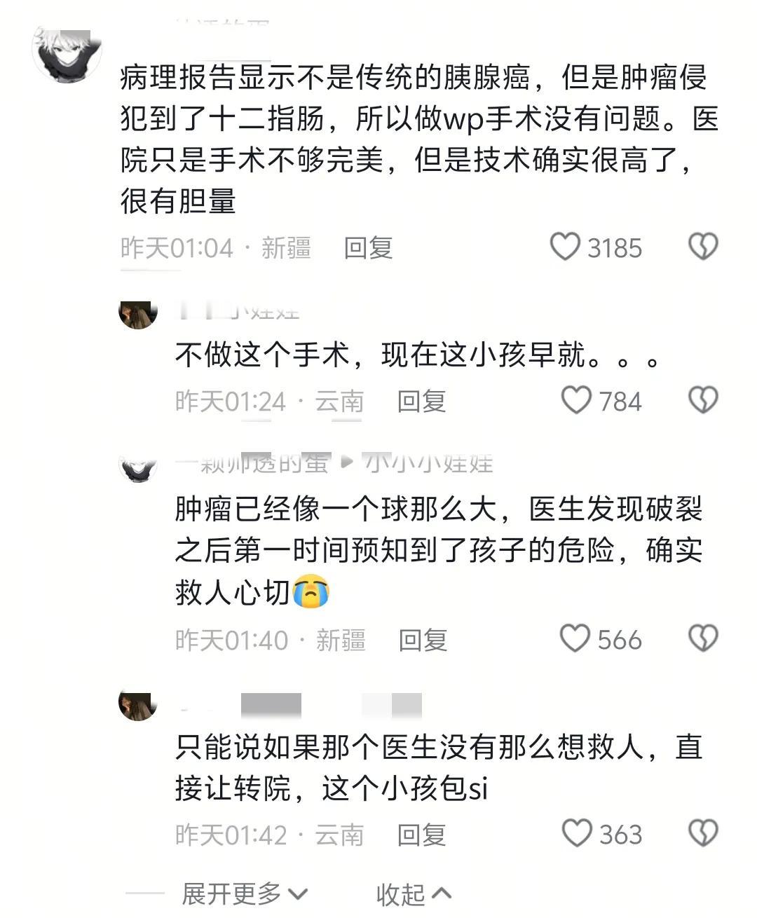 “我要回家,我不想活了!”10岁男孩课间腹痛被送医院,手术被切6个器官 两年来不能吃不能喝,一心求死。母亲也是一夜白头为儿申冤2年。却没想到最冤枉的竟是医生! 看到前面,大家是不是觉得这个医生就是个庸医,小小的手术给人家切6个器官。 但是事实远不是这样,男孩称是课间被撞了一下腹痛,却没有说任何其他病史。医生在检查时发现男孩患有胰腺癌,而当时肿瘤已经破裂出血,是很危急的时刻了! 这名普通的县医院的医生,果断选择了做手术,花了14个小时,救下了男孩的生命。 结果男孩母亲不领情,反而一直强调一个小毛病就切孩子6个器官,孩子怎么活?每天都在网上对医生进行攻击,想要医生赔钱受到惩罚。 我的天,是胰腺癌啊!诸位接触过胰腺癌吗,县医院一般情况真做不了这手术。只有医生才知道这个医生含金量有多高。 我爷爷从脑出血到发现胰腺癌再到去世,就几个月的时间,给你救回来了你还讹人唉。 目前医院说会对医生进行行政处置,称其手术知情同意书记载不规范,24小时内为完成病例,术前会诊不规范等等。 唉,看到这里我是有点替医生寒心了。家属不说明孩子情况,孩子又生命垂危,这种时候是去走程序还是立刻救治呢? 只能说医生的善良给他自己惹来了麻烦,如果不是不得不做这种手术,谁愿意做呢 估计这位家长心里很清楚自己儿子的病情多复杂,奈何花销太大,孩子以后康复几率小,只能打官司找医生医院要求赔偿,大家怎么看呢