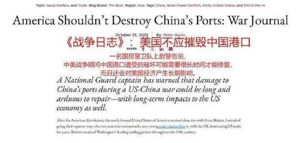 美军官放话:中美开战勿炸中国港口,留自用 最近美国《军事评论》上一位美军军官的言论,说出来实在让人觉得离谱,他声称要是中美开战或中国武力收台,美军要对中国沿海港口搞“可修复打击”,还得赶紧抢占中国海外投资的港口“留着自己用”。这话听着,仿佛美军已经胜券在握,可稍微琢磨就会发现,它不光是殖民时代的老套路没翻新,都2025年了,美国还觉得靠“抢”就能拿捏中国?这背后藏着的霸权幻想,到底能不能成真? 这样的言论实在是对当下国际格局的一种忽视,更是一厢情愿的狂妄自信。面对中国的沿海港口实施所谓“可修复打击”,这个逻辑本身就显得滑稽可笑。中国的沿海港口不仅是全国物流体系的重要枢纽,更是全球供应链的重要节点。在军事冲突的假设下,美军真要付诸这类行动,就得突破中国的反制系统,而中国对第一岛链防御体系的建设早已不再是过去的水平,想要突破几乎是不可能的事。 中国的反介入体系早已在实际行动中展现出不容忽视的威慑力。从歼-20隐形战机到东风系列导弹,再到遍布海域的防御监控系统,这些装备足以让任何企图开战的势力止步不前。再者,美军对港口的进攻还涉及后勤跟进、争取当地国家支持等因素。中国的港口和合作伙伴国的利益都紧密相连。这些港口合作并非单一经济项目,而是深入扎根于具体国家的发展需求和经济命脉。 中方投资建设的港口不仅为当地带来了实际的经济红利,还通过高端技术转移和管理经验的共享助力其产业升级。如果某国因为跟随美国的夹带私货而选择放弃与中国的合作,就意味着他们将失去可靠的经济增长动力。例如在中欧地区,波兰格但斯克港的升级带动了欧洲物流网络的现代化,中国与德国汉堡港合作的绿色航运项目更是直接惠及数千相关岗位。这是实打实的民生保障,美国难道觉得这些国家会因为一场飘在空中的军事计划去“投靠”? 更重要的是,中国一直注重在经济合作中构建互利互赢的规则体系。通过“海丝友港网络”的建设以及全球供应链合作,中国早已建立了广泛的伙伴关系网络。这些规则保障了参与国的共同利益,也成为中国反制任何不合理行为的重要武器。而美国寄希望于“抢港口”,无异于和全球主流规则为敌,结果只能是声援者寥寥。 即便抛开这些长期趋势不谈,美国自身的问题同样让它难以推进这样的荒唐计划。早在今年4月,美军就在相关听证会上坦言自身的基地防御弱点。司令帕帕罗表述明确:美军在冲突中的西太平洋基地体系极为脆弱,一旦冲突发生,大量战机可能被摧毁。而归根到底,美国军方也难逃国内“天高皇帝远”的内部矛盾,政客们的高谈阔论与军方实际评估完全脱节,如何能确保行动方向一致? 从这些现实美军所谓的“抢港口”计划无疑是一场纸上谈兵的狂想,它的实施不仅技术层面得不到保障,还会因当地经济反对和国际伙伴关系受阻而彻底破产。而到头来,这种霸权幻想里头真正暴露的,是无法适应全球化格局变化的一种妄念。时代已经变了,强权政治和殖民经济的旧套路行不通了,而美国若再抱着这些“旧账本”,那只能接受进一步边缘化的后果。 也许美国真正需要的不是继续对外炫耀霸权,而是正视自身与其他国家间的竞争逻辑,从工业制造、产能提升到技术创新进行实质性的反思。如果它不思进取,只想着靠“抢”的手段维持垄断地位,那么只能越来越远离全球化发展的主航道。这既是对全球贸易规则的伤害,也是对自身在国际舞台立足点的一种伤损。 美国若真敢实施“抢港口”的空想,至少还得跨过三道明显的阻碍:首先是中国维护关键区域经济的决心与能力;其次是国际多边主义为当地国家带来的根本利益;则是全球供应链的稳定性。而如今种种迹象都表明,美国这个计划还没成型,就已经注定失败。时代的车轮向前滚动,而继续沉迷旧梦的美国恐怕会发现,它会被落在后头,连跟上都成问题,更别提改变时代走向了。