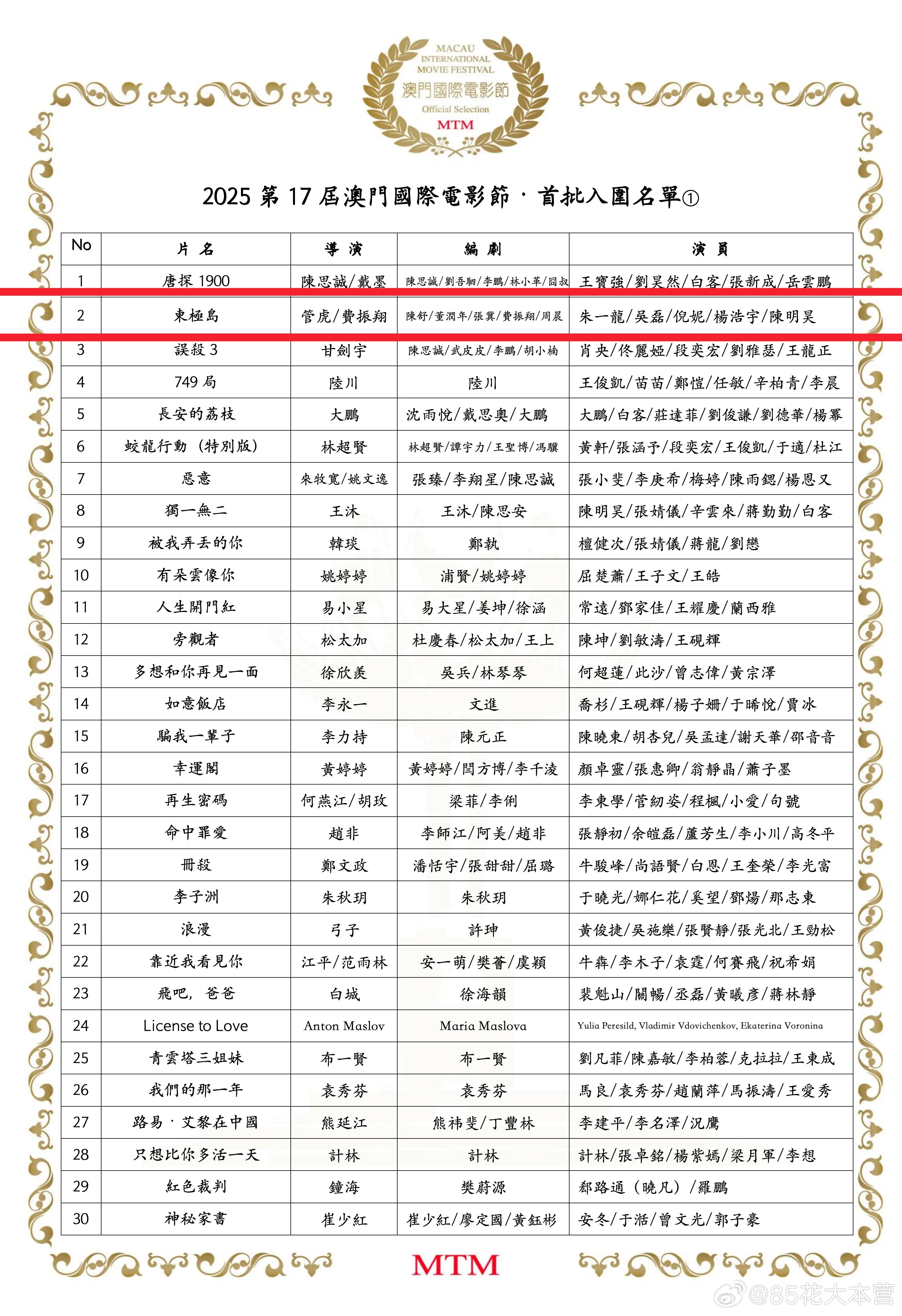 2025第17届澳门国际电影节首批入围名单——《东极岛》入围!倪妮|阿花的电影节