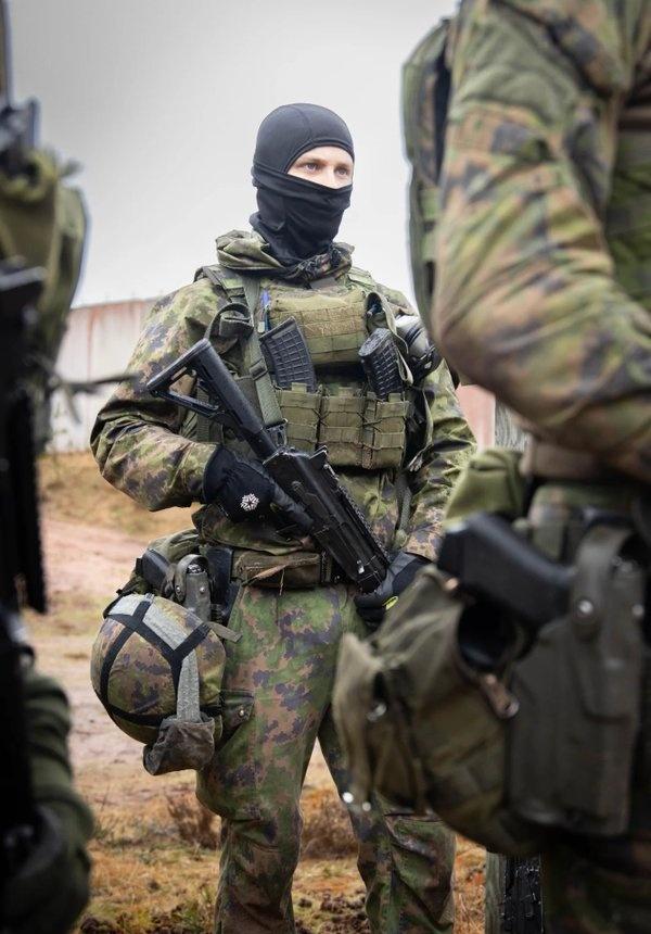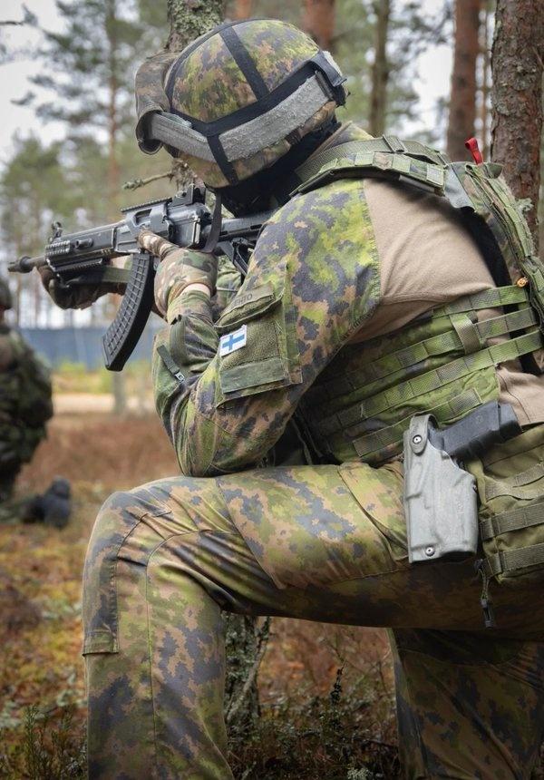 M05 Maastokuvio 是芬兰国防军 2005 年定型、2007 年全面换装的四色林地迷彩,也是北约成员国中少数非“像素”取向的现代图案。 设计之初,军方把芬兰森林研究所拍摄的北方针叶林照片交给国家技术研究中心,用算法把林冠、树干、阴影和地衣压缩成四种高频斑块,再人工去掉所有直线——所以远看像随意泼洒的“苔藓”,近看却找不到一处直角,视觉噪点极高。 四种颜色按出现面积由大到小依次是浅沙褐(地表干燥苔藓)、深橄榄绿(云杉)、墨绿(冷杉阴影)和炭黑(深穴与树干),色块边缘呈不规则锯齿,可在 50–300 米内打乱人体轮廓,既适应盛夏浓荫,也适合秋季褐绿交杂的林下环境。 芬兰军方在 2006 年冬季拉普兰实兵演习中对比旧款 M91 后得出结论:M05 在移动状态下被发现距离平均缩短 27%,静止潜伏时缩短 34%,遂于 2007 年批量列装。 与同期流行的“数码迷彩”不同,M05 并非像素化,而是模拟地衣边缘的碎形曲线;因此它既能在微距上混入树皮纹理,也能在宏观上与林冠剪影重合,被士兵戏称为“会消失的苔藓”。除标准林地版,系列还包括: - M05 荒漠 Hellepuku(浅沙底色,色块放大) - M05 雪地(纯白底+少量灰绿斜纹,可翻面与林地版组合) - M05 城市灰(低明度灰绿,供宪兵与舰艇分队使用) 面料方面,军版采用 50/50 棉涤混纺,表面做 NIR(近红外)抑制处理,在 700–1200 nm 波段反射曲线与北欧植被一致,可规避早期夜视仪侦测。2016 年起芬兰开放版权,允许民间销售,欧洲户外圈随之出现同款猎装与登山外套;军迷则把它与瑞典 M90、挪威 M98 并称“斯堪三剑客”。