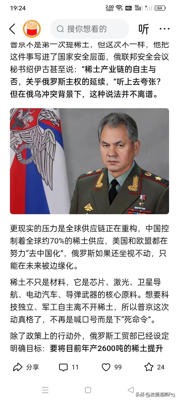 去中国化?俄罗斯搞稀土能行吗? 曾经有很多网文说,地球上并不缺少稀土矿藏,实际上是除了中国,全世界没有任何一个国家拥有稀土的加工、提纯、特别是加工高纯度的稀土提纯技术的链条。比如全世界科学技术最发达的美国,也需要将开采的稀土矿石运到中国来加工提纯,然后再购买回去,才能在各高科技的零部件上使用。 那么,俄罗斯为了摆脱对中国稀土的依赖,计划要将稀土的开采量提高到现在的20倍,投资7000亿卢布,在西伯利亚建立稀土工业体系集群。所谓的稀土体系集群,就是从开采稀土矿石到加工,最后提纯出来高纯度的、可以使用的稀土,行成一个链条、系统。 这就出来了问题,连美国那样全世界科学技术力量最先进、经济力量最强大的国家,相当一些人都认为,在较短的时间里都没有办法将稀土矿石加工提纯出来高纯度的稀土,难道俄罗斯只要肯花点卢布就行吗? 会不会又是理想很美好,现实很骨感?