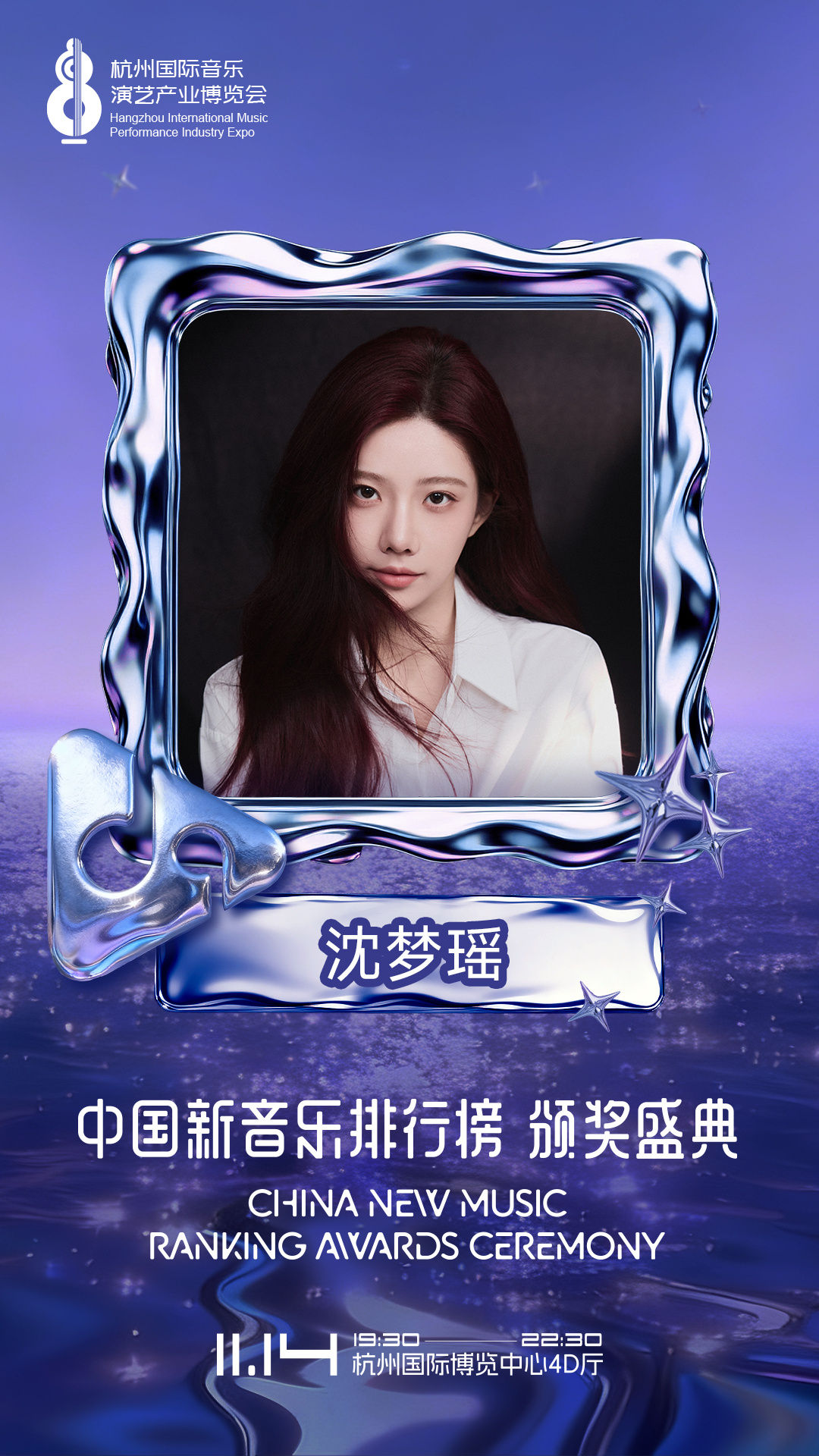 【沈梦瑶】沈梦瑶加盟2025中国新音乐排行榜颁奖盛典,11月14日相聚杭州。