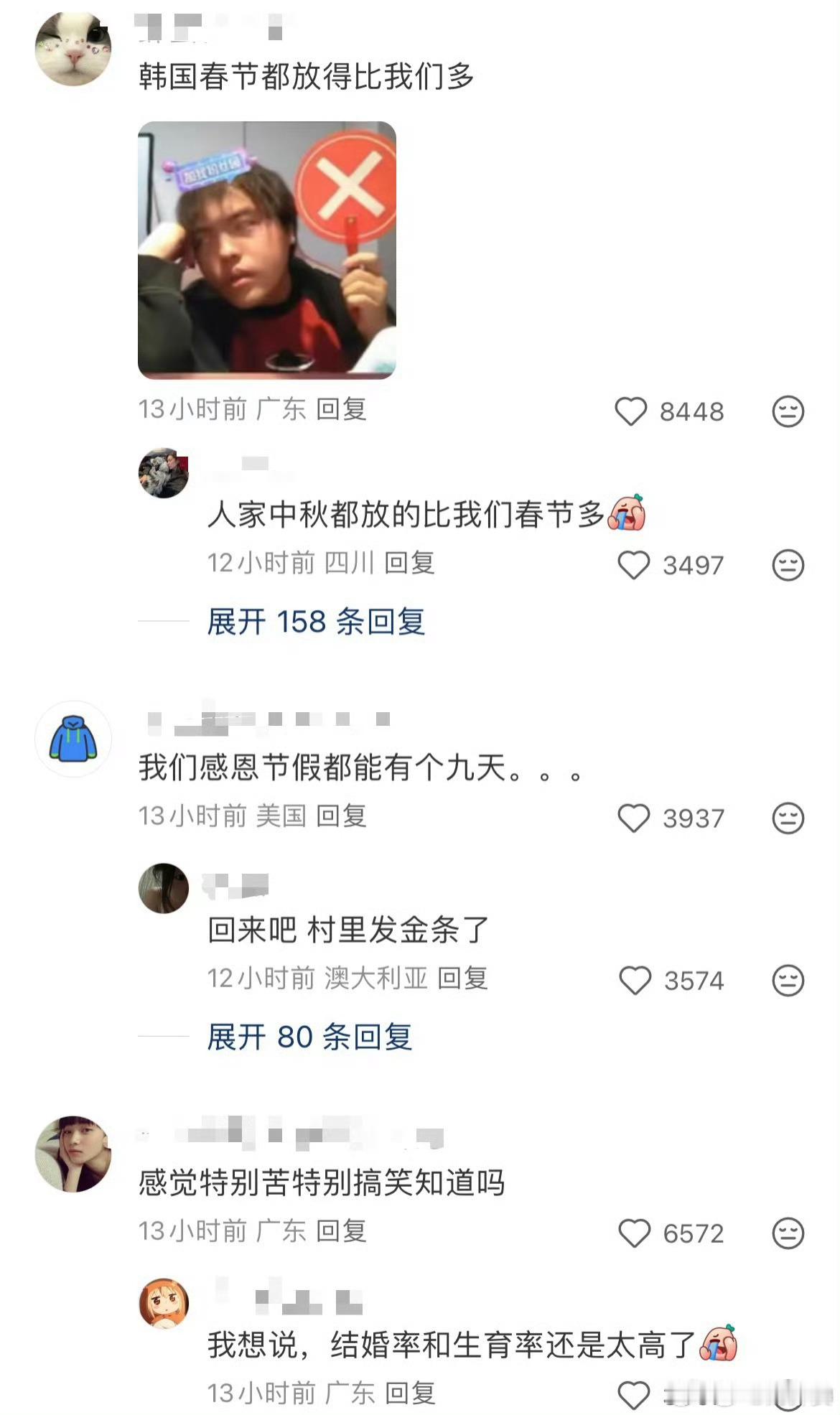 大家也不想内卷,连隔壁的隔壁韩国在中秋和春节假期都要赶上我们了。