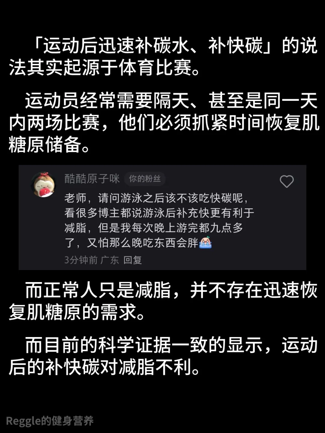 运动后补快碳对减脂有负面影响