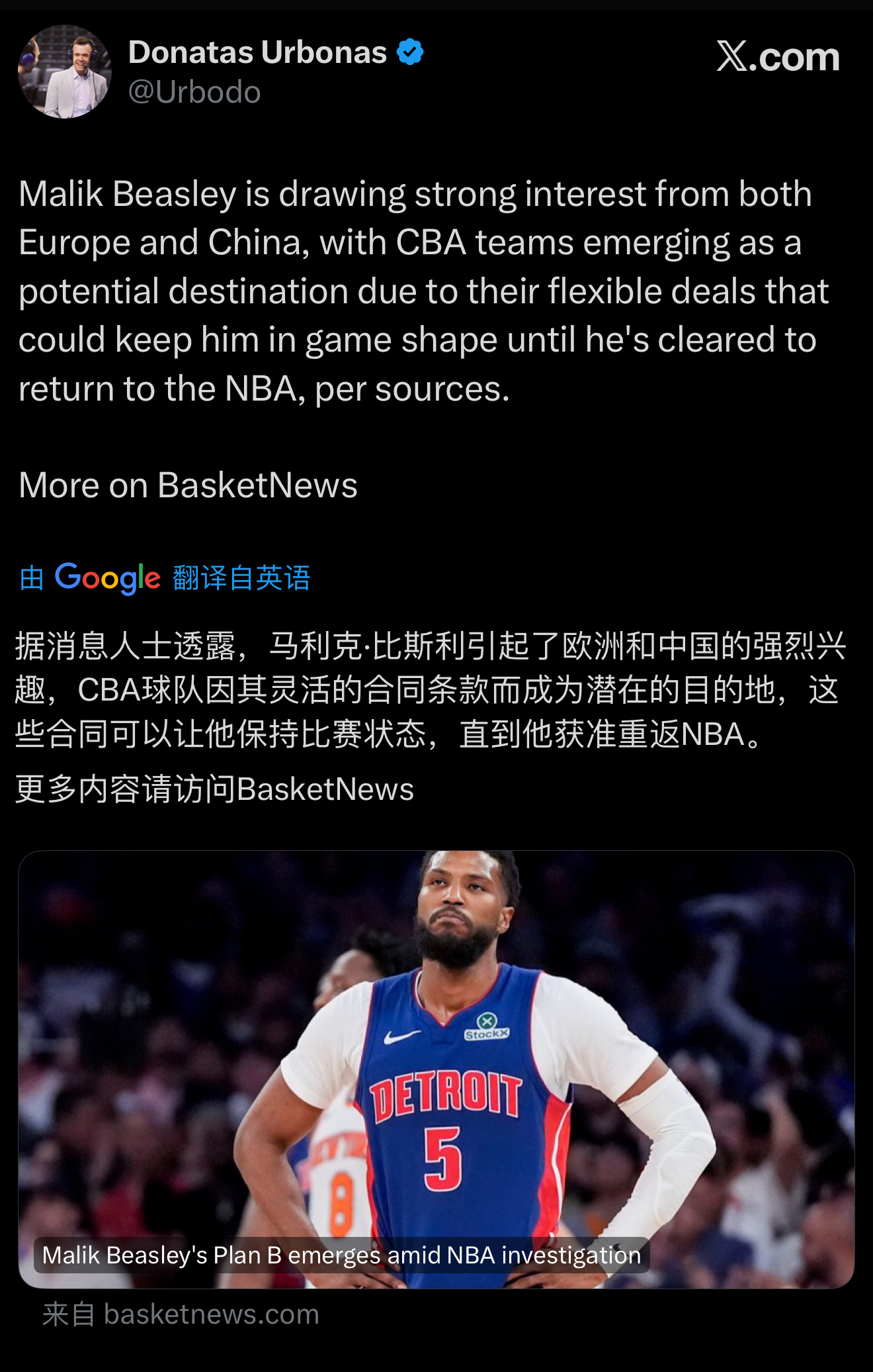 欧洲媒体人报道,有欧洲和中国的俱乐部,对前NBA球员马利克·比斯利有兴趣,不过我们的球队能接受合同跳出条款吗[思考]