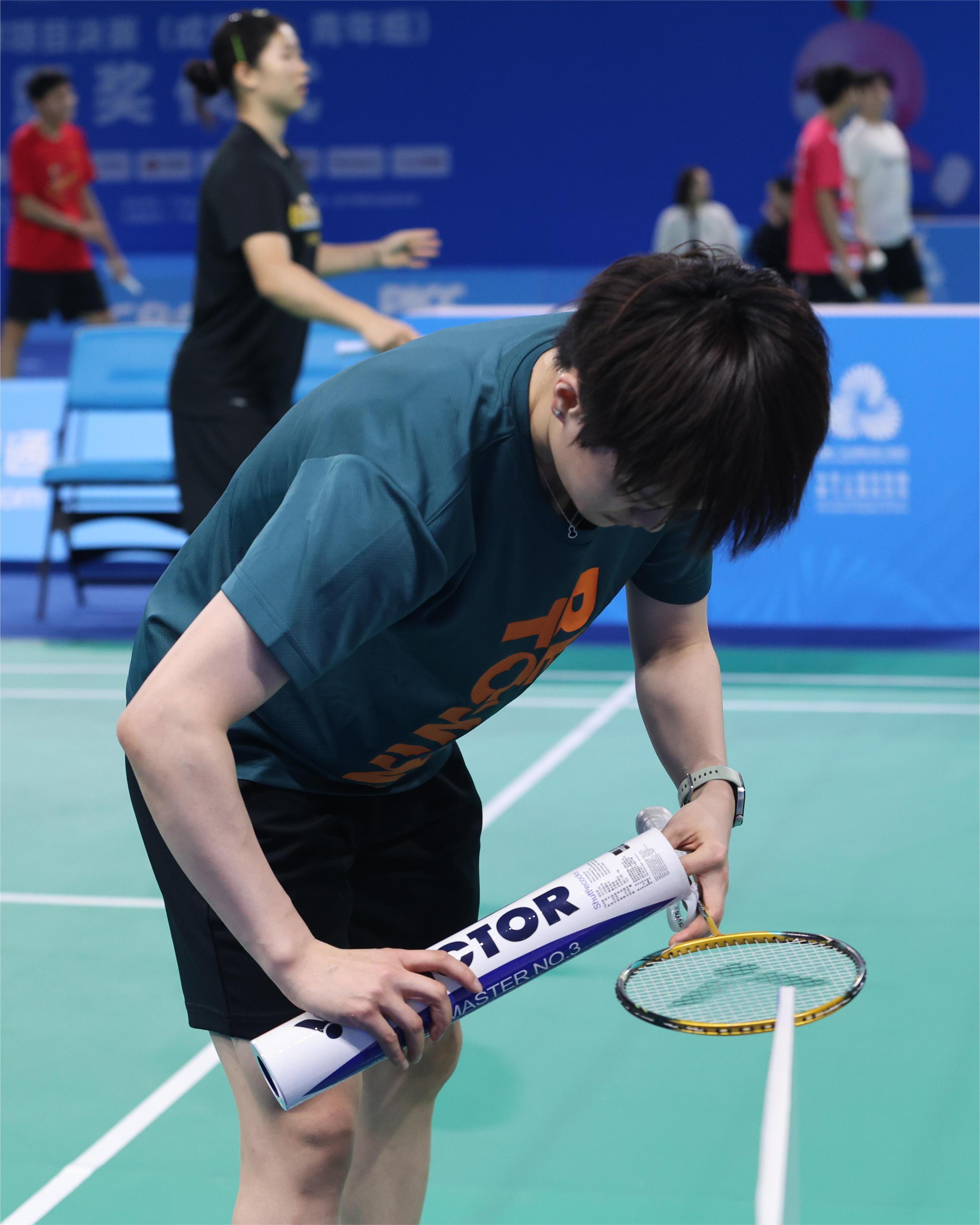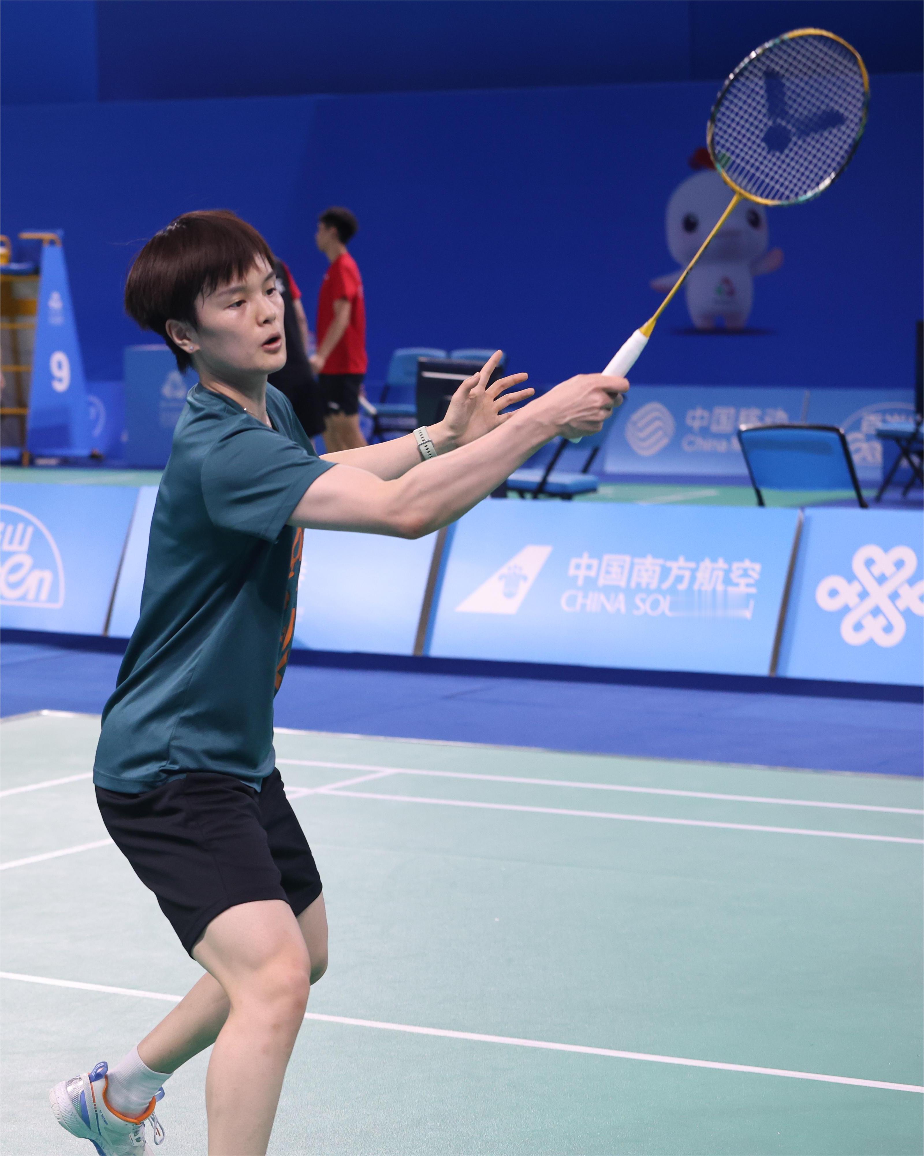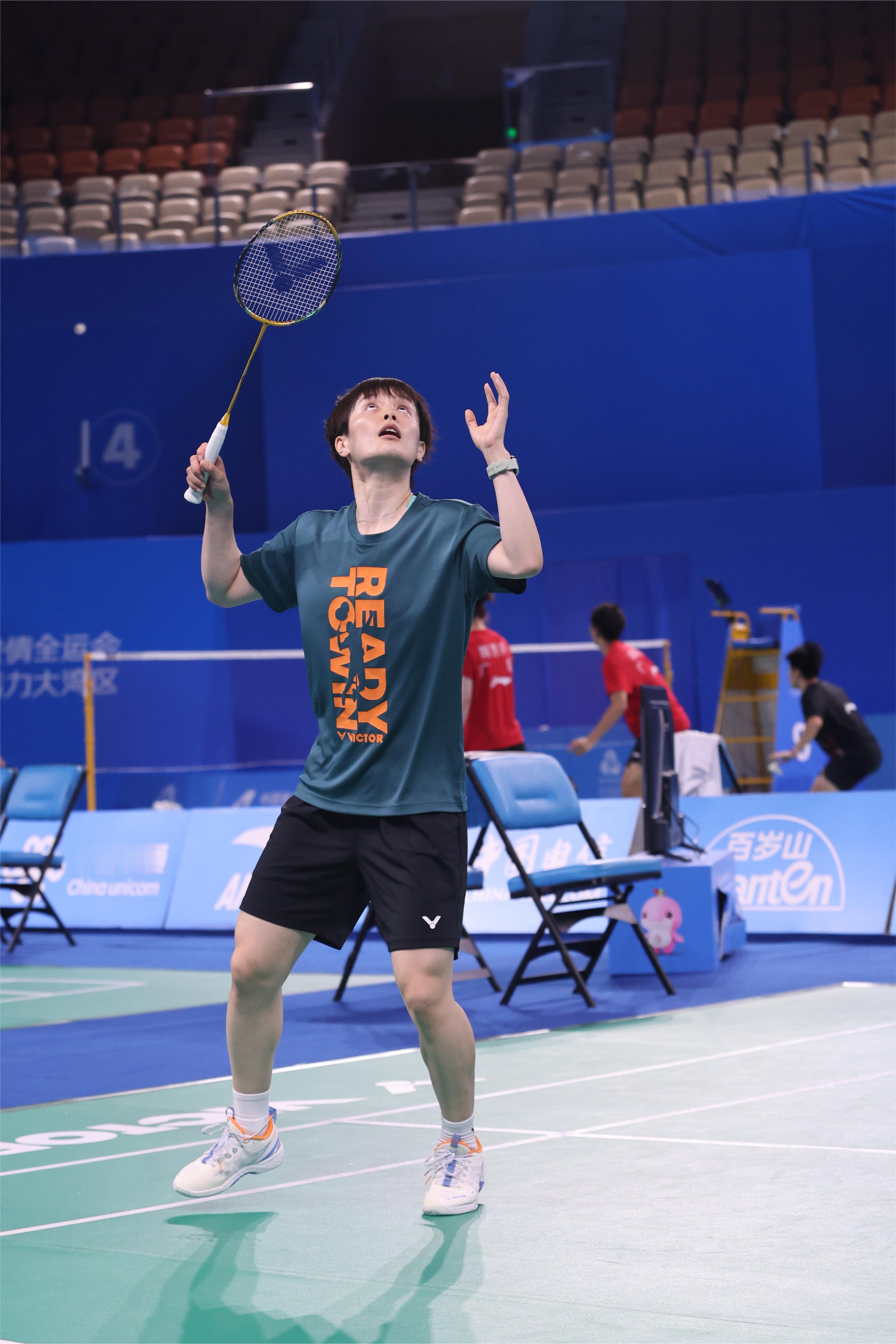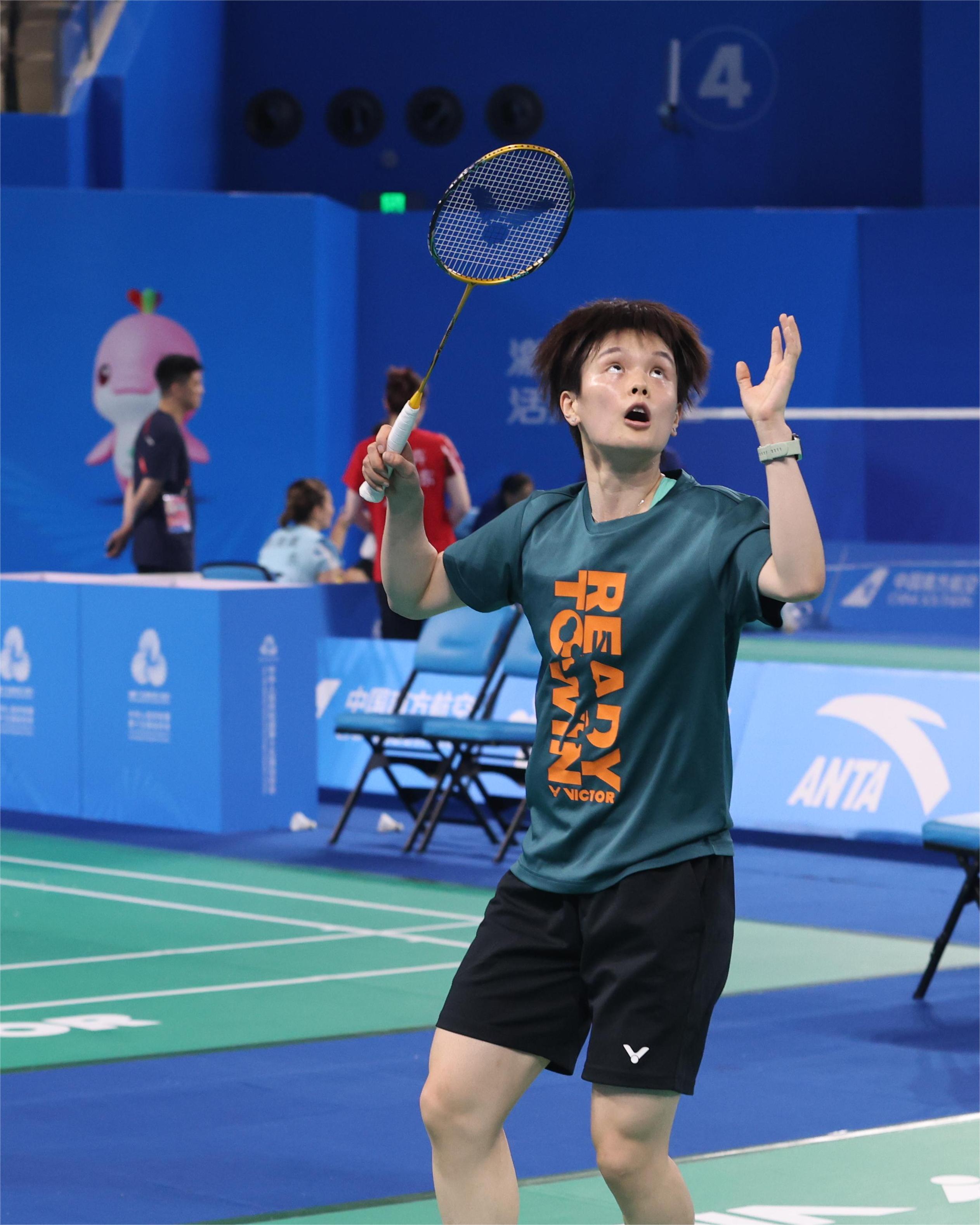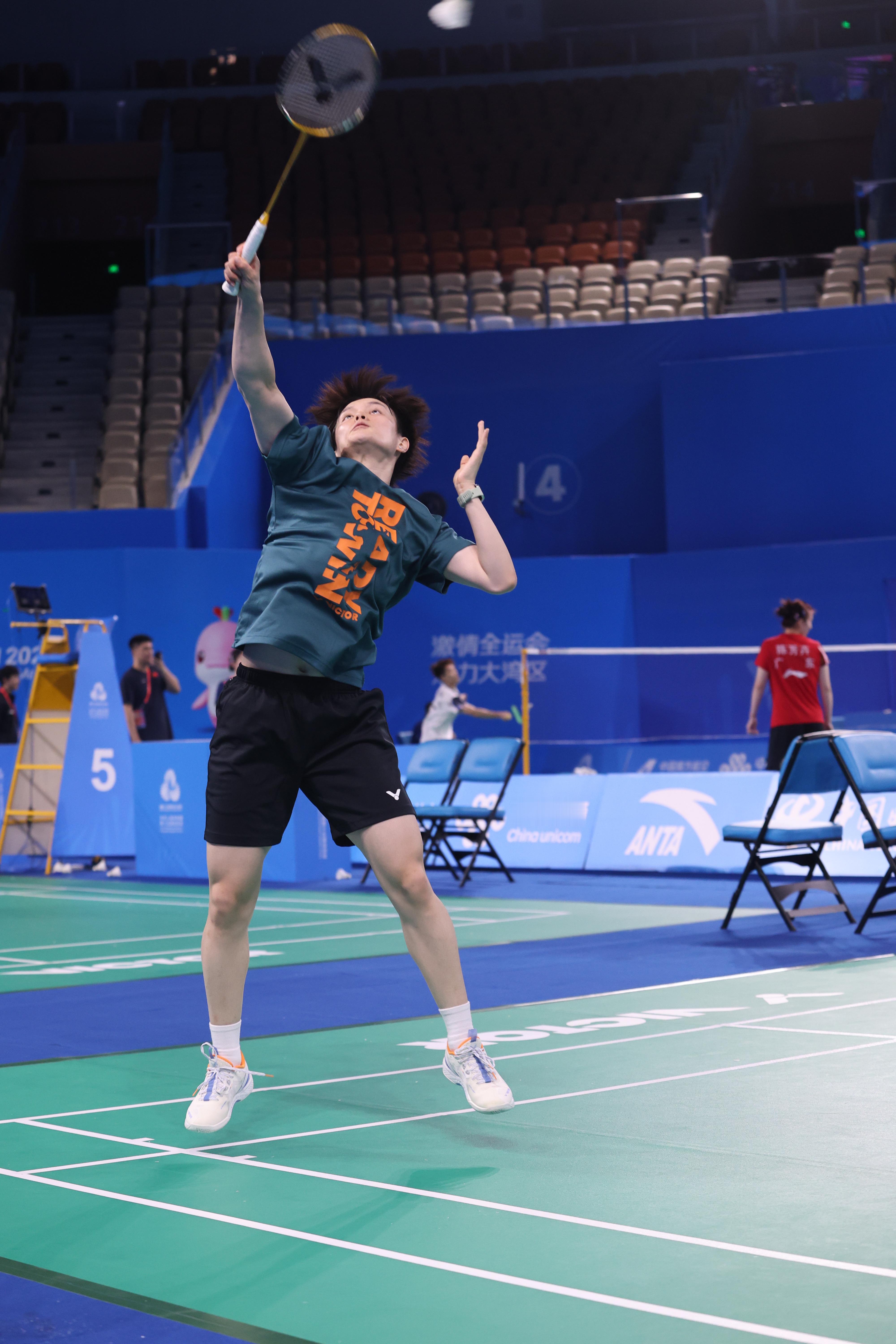 王祉怡适应场地,用的球拍是黄金利爪[不愧是你]十五运会胜利在握V观全运会不负每一次热爱
