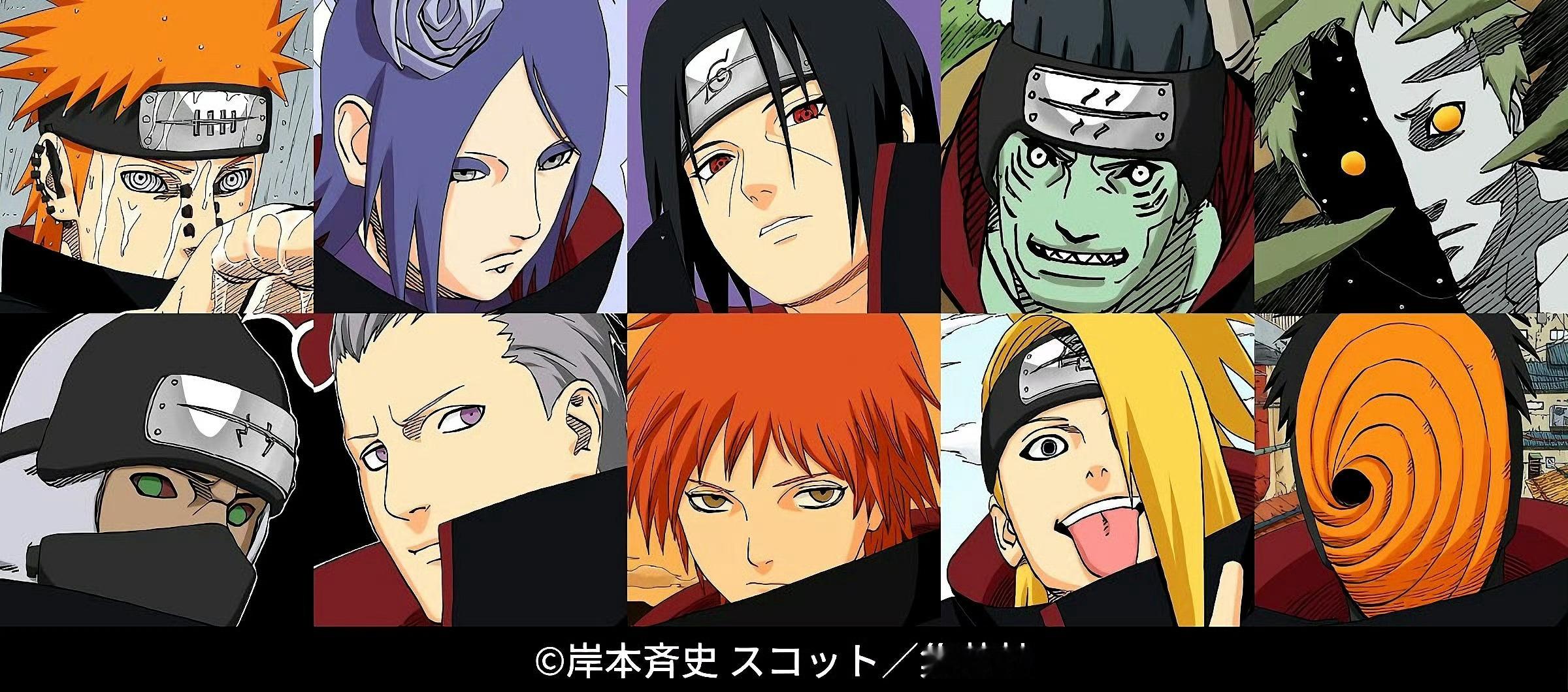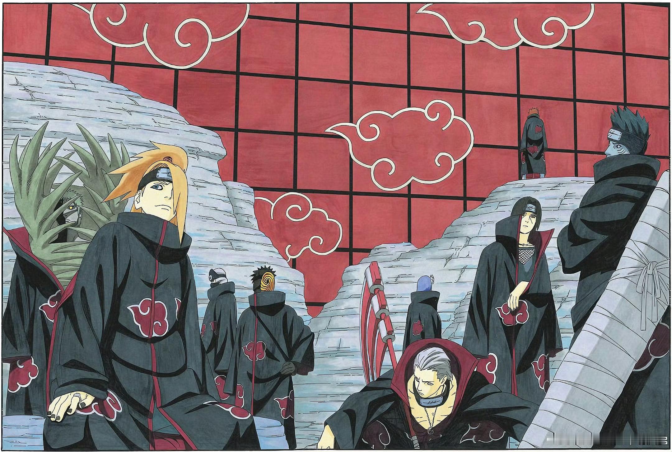 『火影忍者官方』最新发布推文:“晓组织,集结”我也整理了一些晓组织的原画[抱一抱