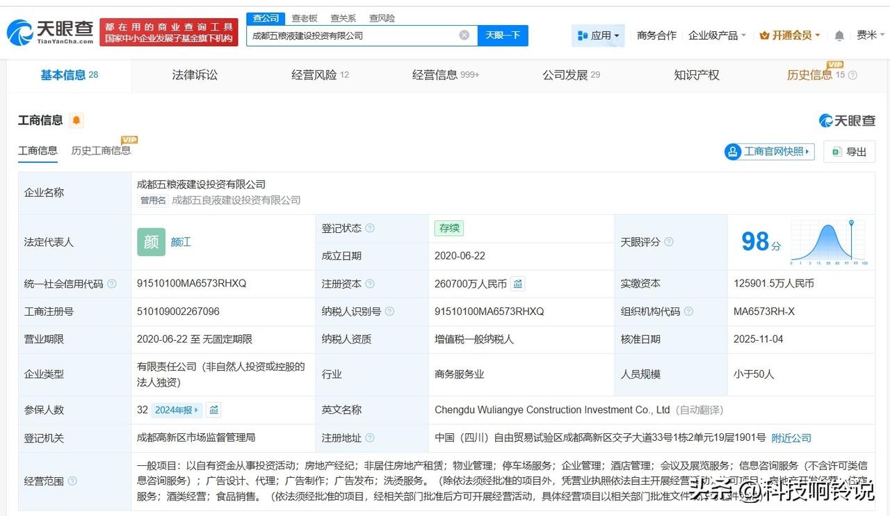 【五粮液集团旗下成都建设投资公司增资至26.07亿 增幅约86%】 天眼查工商信息显示,近日,成都五粮液建设投资有限公司发生工商变更,注册资本由14亿人民币增至26.07亿人民币,增幅约86%。 成都五粮液建设投资有限公司成立于2020年6月,法定代表人为颜江,经营范围包括以自有资金从事投资活动、房地产经纪、非居住房地产租赁等。股东信息显示,该公司由四川省宜宾五粮液集团有限公司全资持股。 天眼查信息: