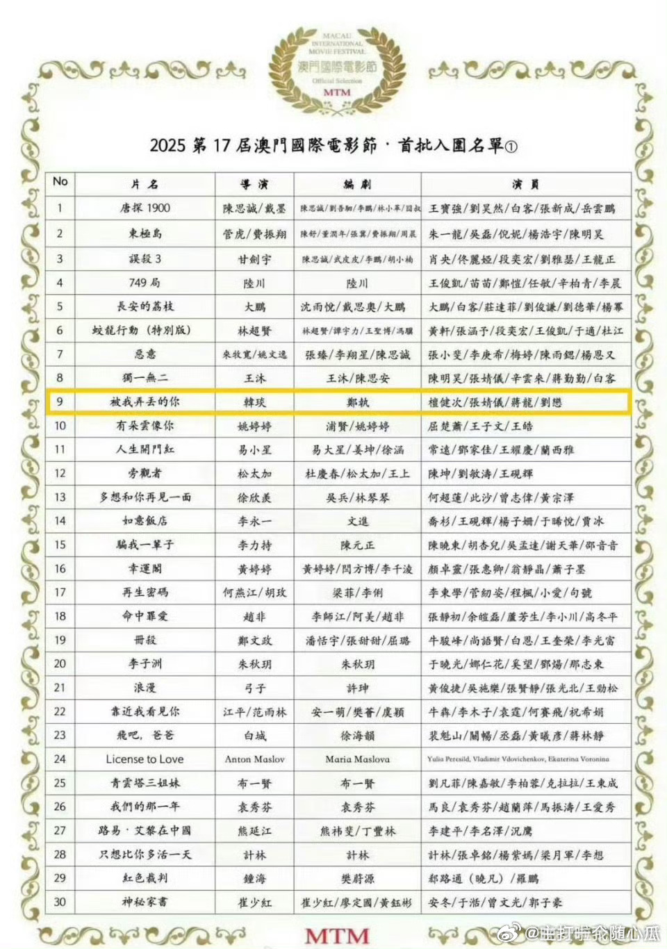 檀健次张婧仪《被我弄丢的你》入围第17届澳门国际电影节!