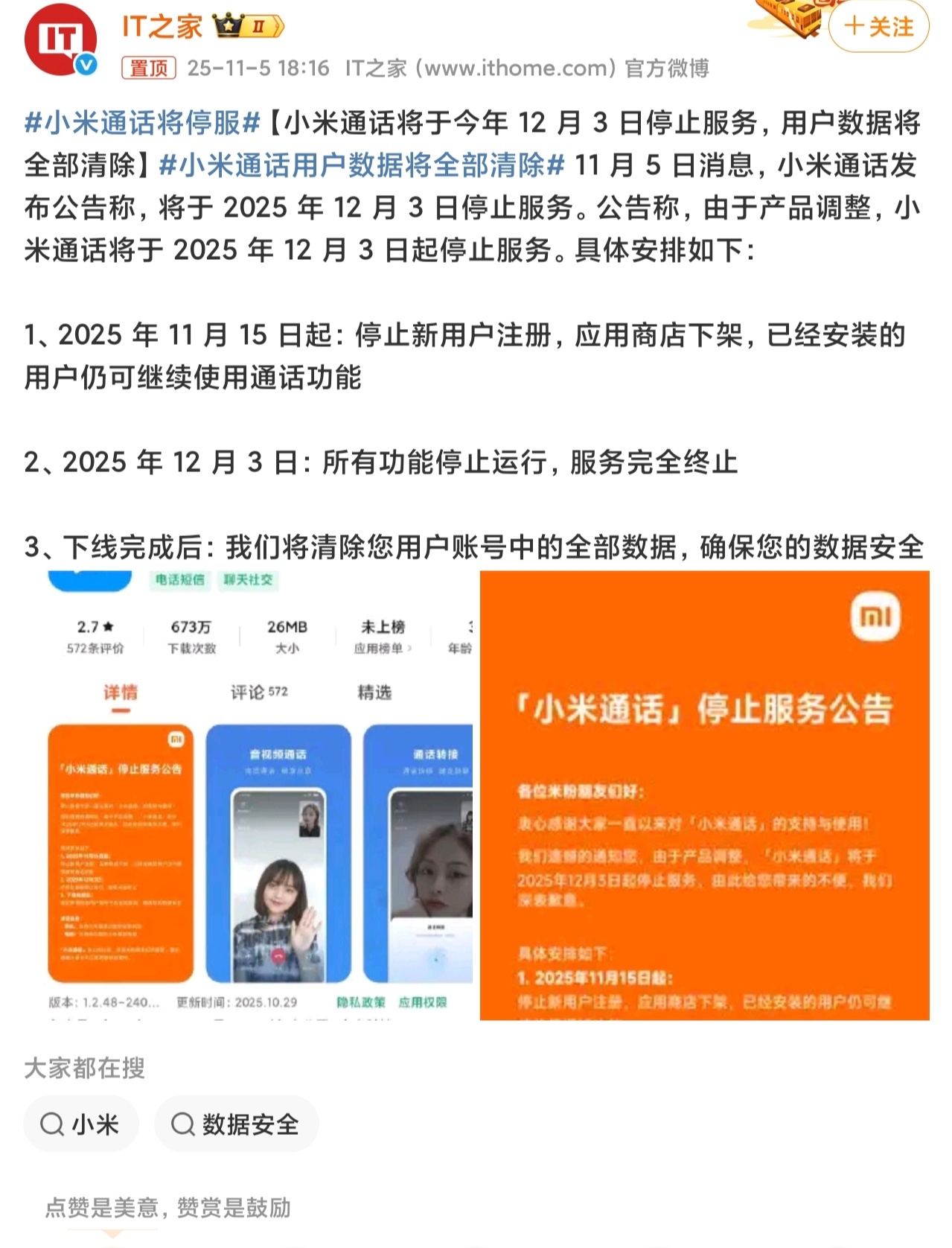 小米通话将停服和微信通话类似,消耗流量,不需要手机卡,还是微信太强了,即便是厂商继续维护,也基本没人用,大家都用微信,这每家企业都有自己的基因,互联网厂商做不好硬件,硬件厂商做不好第三方app。