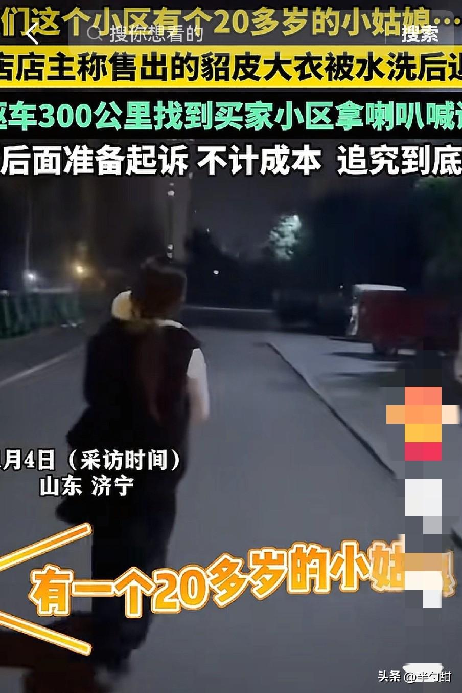 这年头,老板都得自己上门维权了,是什么能让商家驱车300公里去讨说法,果然山东人就是硬核啊,绝不吃哑巴亏。 线上好不容易卖了一件皮草,你不满意退货就是,你水洗掉再退是什么意思呢? 近日,一女子冲进小区,高举喇叭到处找“退货买家”的视频,大家应该都看到了吧。一件价值将近2000的皮草,被人水洗再退货,稍微有点常识的人都知道,这东西不能下水,要找干洗店处理。 这个宝妈以带孩子没时间见“买家”为由,拒绝面对,但是之前收到衣服,还秀了“朋友圈”,甚至还发给老板,表示满意,可万万没想到,在七天无理由的最后一天,给水洗了,还退货给商家。 老板也是暴脾气不惯着这一行为,她被平台强制退款,衣服又不能再进行二次销售,直接洗废掉,警方也已经介入,老板说了,对这样的顾客将“不计成本的维权”。 买家还坚持称,收到衣服就已经是这样,我是不信的,网购过衣服的都知道,你买个几百块的衣服,店家都把你当菩萨供起来,还别说上千的衣服,怎么会有这样的宝妈买家,这一波我支持商家。 (图片来自网络视频)