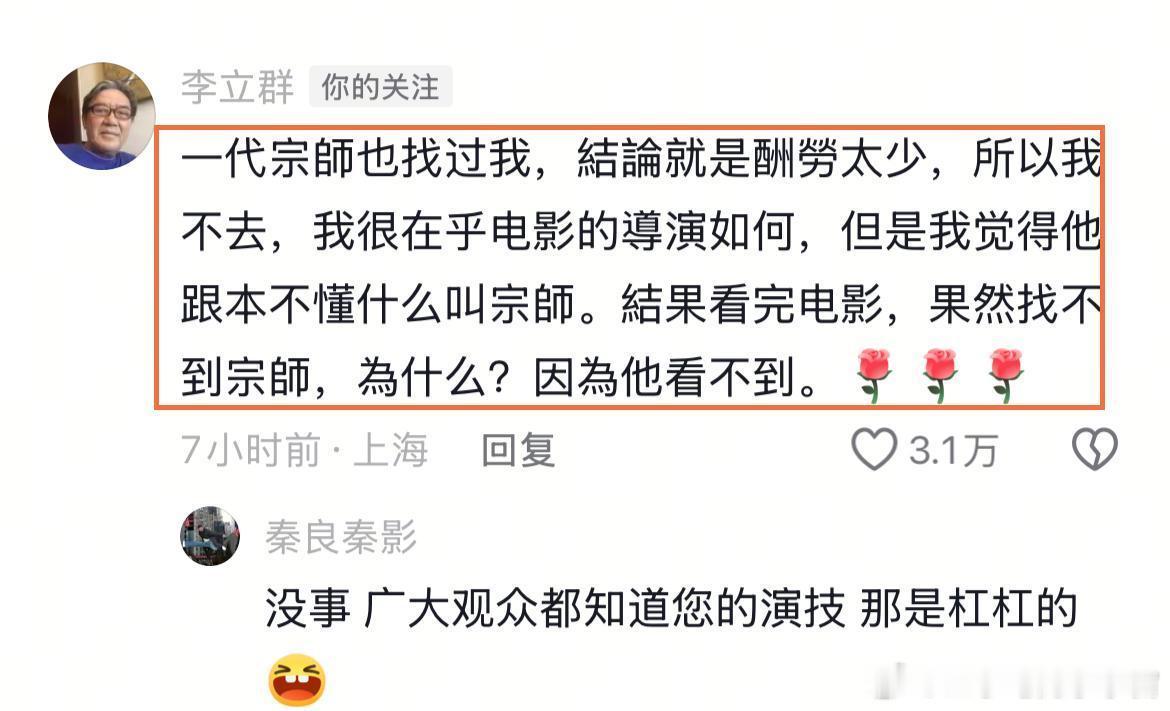 向太说完之后,李立群这位老戏骨也是加码曝料,话语中的暗讽味非常浓。