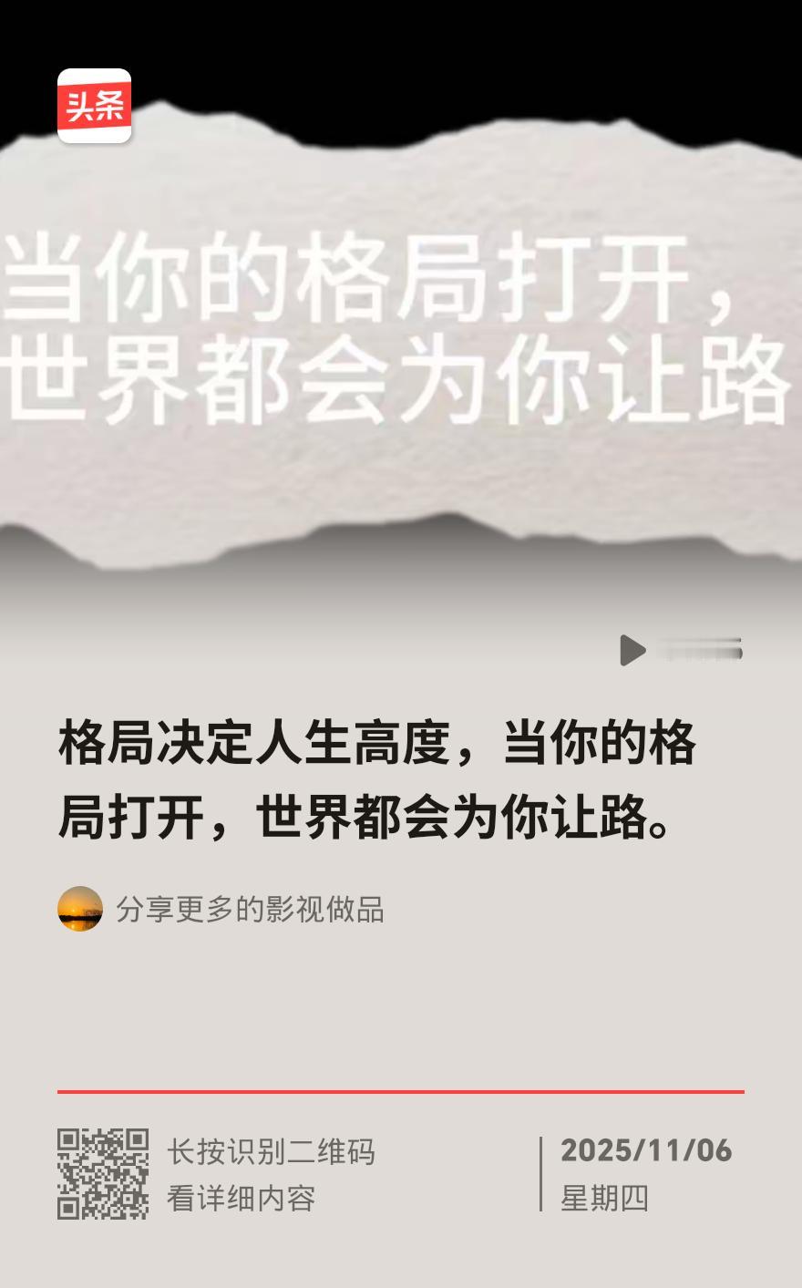 格局决定人生高度!心宽似海的人,从不会输在计较里 爆款文《心宽似海,格局成就人生》刷屏,用生活化的比喻把“格局”讲得通透,原来活得顺的人,都赢在“不计较”上。 北海的浪最懂包容的智慧,礁石棱角尖锐,浪却不硬碰硬,一遍遍冲刷后,硬是让坚硬外壳裹上柔软青苔。这像极了生活,有人为小事争得面红耳赤,把自己困在狭隘里;有人心宽如深海,再大风浪也能从容接纳。 数学定律藏着人生真相:同样增加周长,半径越大的圆,面积增长越多。格局小的人,纠结三分得失就耗尽心力;胸怀宽广者,退让七分仍有广阔天地。江南茶农采明前茶,芽尖初展就收手留叶,这份留白,让来年新芽更鲜醇。 张爱玲《小团圆》的结尾戳中很多人:“所有故事都已完结,可是突然又开始了。” 关系断裂、执念放下,看似是结束,实则腾出了新可能。就像深海鱼接纳黑暗才学会发光,台风中心包容狂风才保有平静,心足够宽,挫折也能变成成长契机。 格局从不是天生的,而是慢慢修炼的通透。卸下怨怼、放下计较,就是给人生减负。你最近有没有因为放宽心,收获了意外惊喜?来评论区聊聊~心宽是财富 心宽是财富 对格局的理解 格局