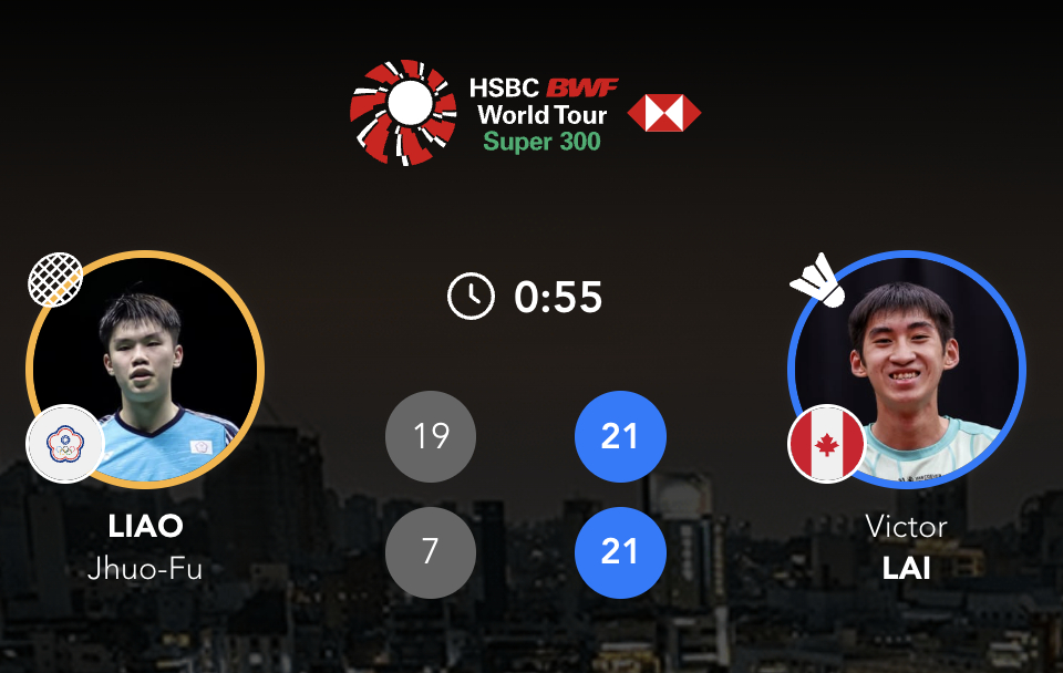 赖浩俊🇨🇦 21-19、21-7 廖倬甫
