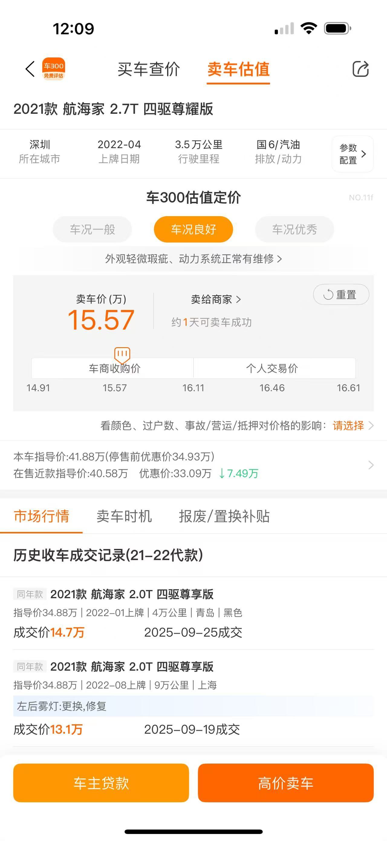 开完朋友的享界S9T,准备把油车卖了置换,去询了一下价,没想到啊,三年前落地四十多万的油车,现在就15万左右,图二是2.0T版本,我是2.7T版(图一),应该多个一两万[二哈]