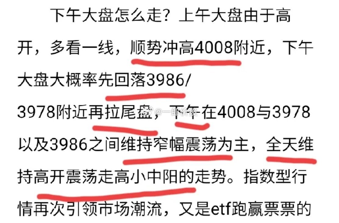 回顾本周行情预判,精准把握每一次关键节点:周二大盘中阴调整至3938点时,即明确指出此处为15分钟级别小双底形态,本周4025点目标并非终点,后续仍有上行空间;周三受外围市场拖累,三大指数大幅低开,随即判断大概率会出现“地下室旱地拔葱”式的低开高走中阳行情;而对于今日走势,此前也已明确预判将继续冲高,最终大盘如约突破4000点整数关口,最高触及4008点,全天维持高开高走的强势格局。