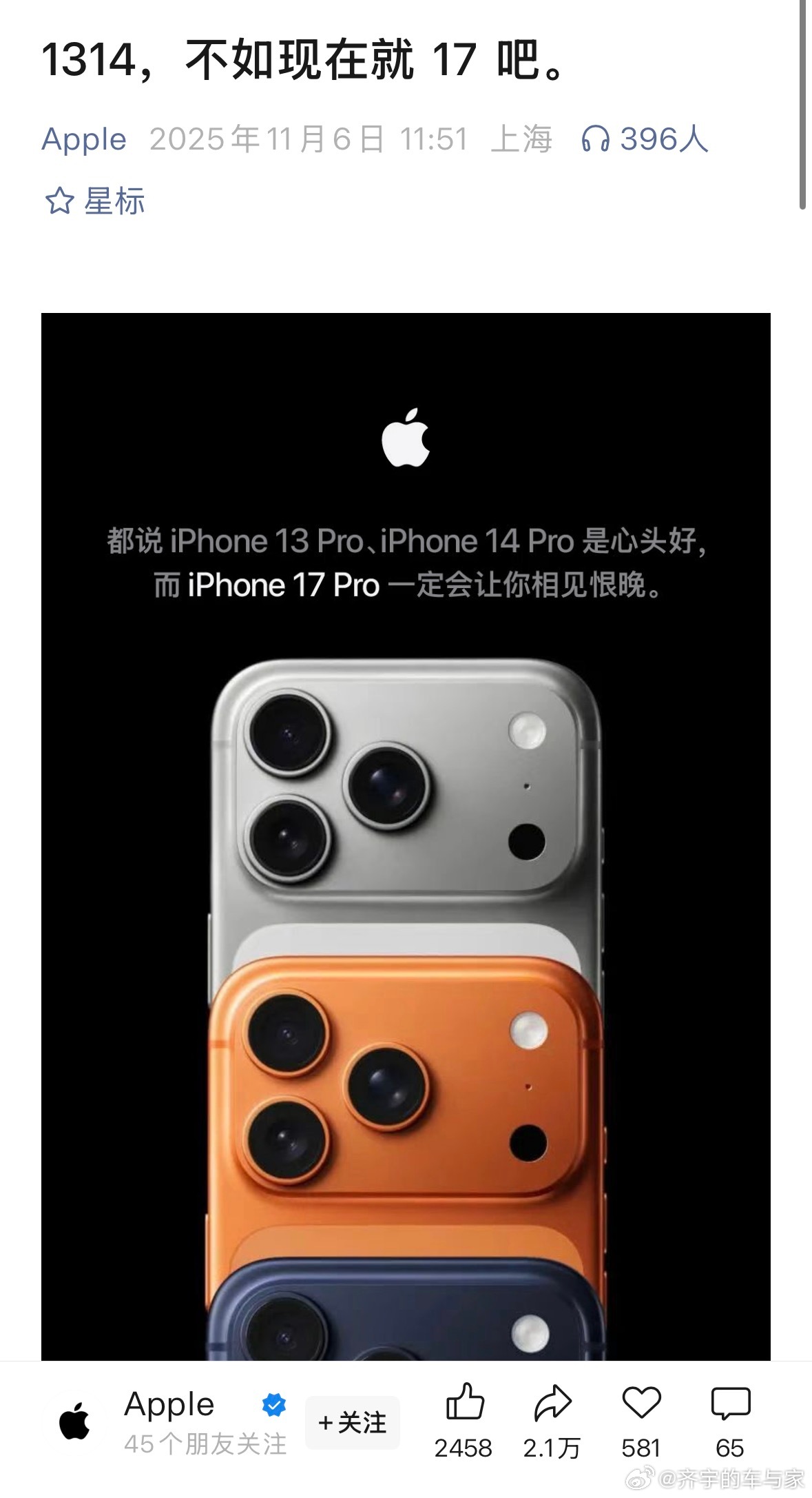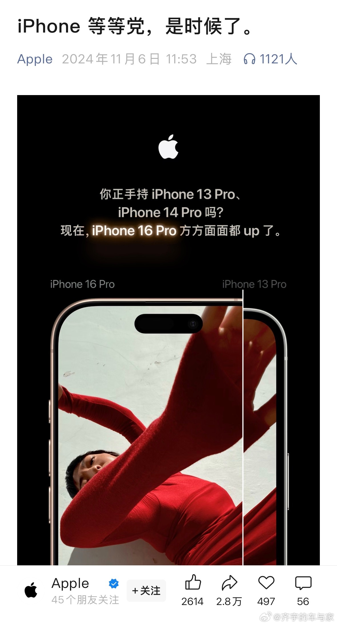 iPhone16pro发布的时候,苹果也是喊话13pro和14pro换新机,今年还是这俩[微笑]