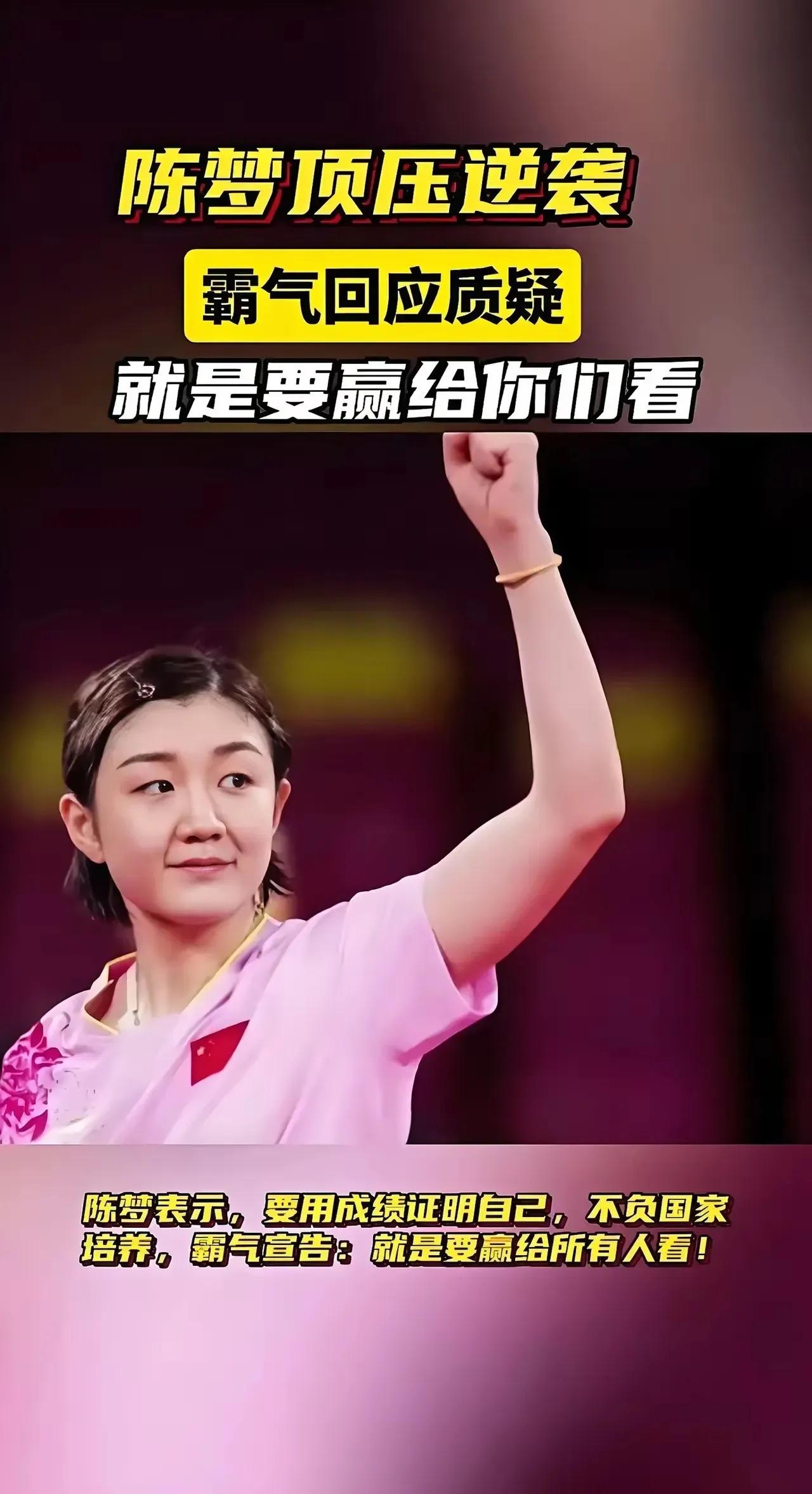 全运会乒乓球赛场烽烟再起,陈梦能否在女单赛场破茧成蝶?这位山东女将11月4日随队出征,以4号种子身份亮相,瞬间点燃全网热议! 最炸的焦点,莫过于她自曝"9个月没碰球拍"!在直播里,陈梦坦言自己长期停训,全靠近期友谊赛和特训疯狂找状态。镜头里她挥拍时绷紧的肌肉线条,训练服被汗水浸透的深色痕迹,都在无声诉说着:这个女人,要拼了! 上届全运会女单止步八强的遗憾,此刻成了她最锋利的战刃。有人翻出旧账:"状态下滑还敢冲?"却忽略了她训练时每天加练到场馆熄灯的狠劲——正手爆冲弧圈球划破空气的嘶鸣,反手快撕让陪练都接不住的凌厉,都在证明:那个让对手闻风丧胆的"梦时代",正在强势回归! 这次她身兼女单、女团双线作战,目标直指金牌。训练馆里,她对着发球机狂练到手腕发抖;战术板上,密密麻麻标注着对手弱点;就连吃饭时都在看比赛录像——这个30岁的老将,用行动诠释什么叫"老兵不死"! 全运会女单赛场,是陈梦的救赎之战,更是她向世界宣告的战场!当山东队战袍在身,当国歌响起那一刻,我们期待见证:一个王者,如何从低谷中涅槃重生!陈梦 陈梦巴黎