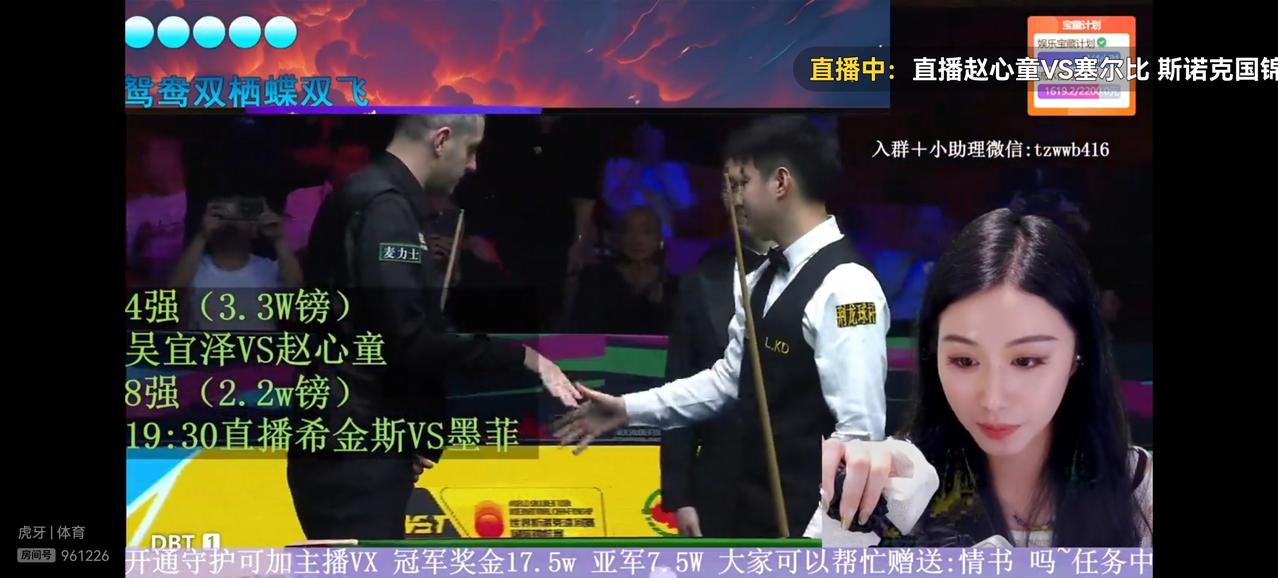 热烈祝贺吴亦泽和赵心童打进了国锦赛南京站的四强。 吴宜泽是6:0零封霍金斯闯进了决赛,吴亦泽的状态真是谁也挡不住啊。 赵心童是6:5险胜塞尔比。 让人不愿看到的是半决赛过早地吴宜泽对阵赵心童。 友友们,你们认为赵心童和吴宜泽谁将进入决赛呢?的确很难预料。