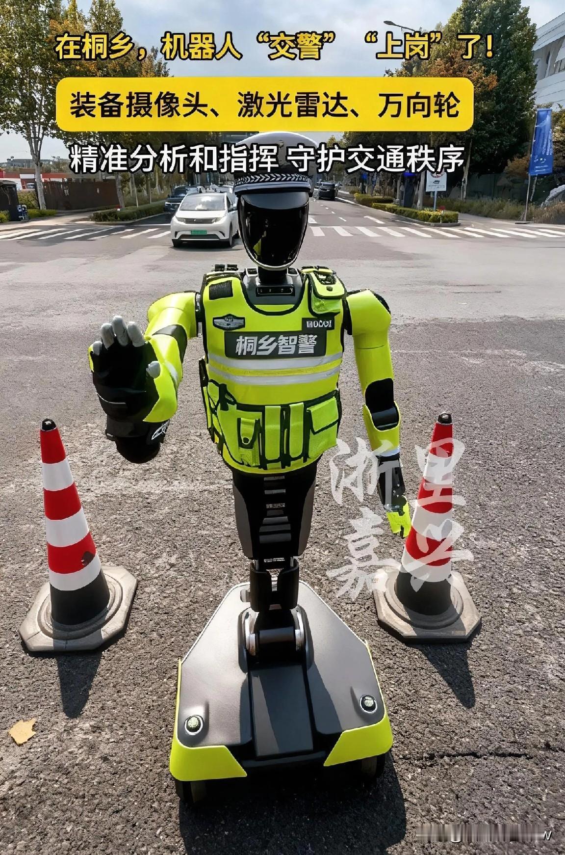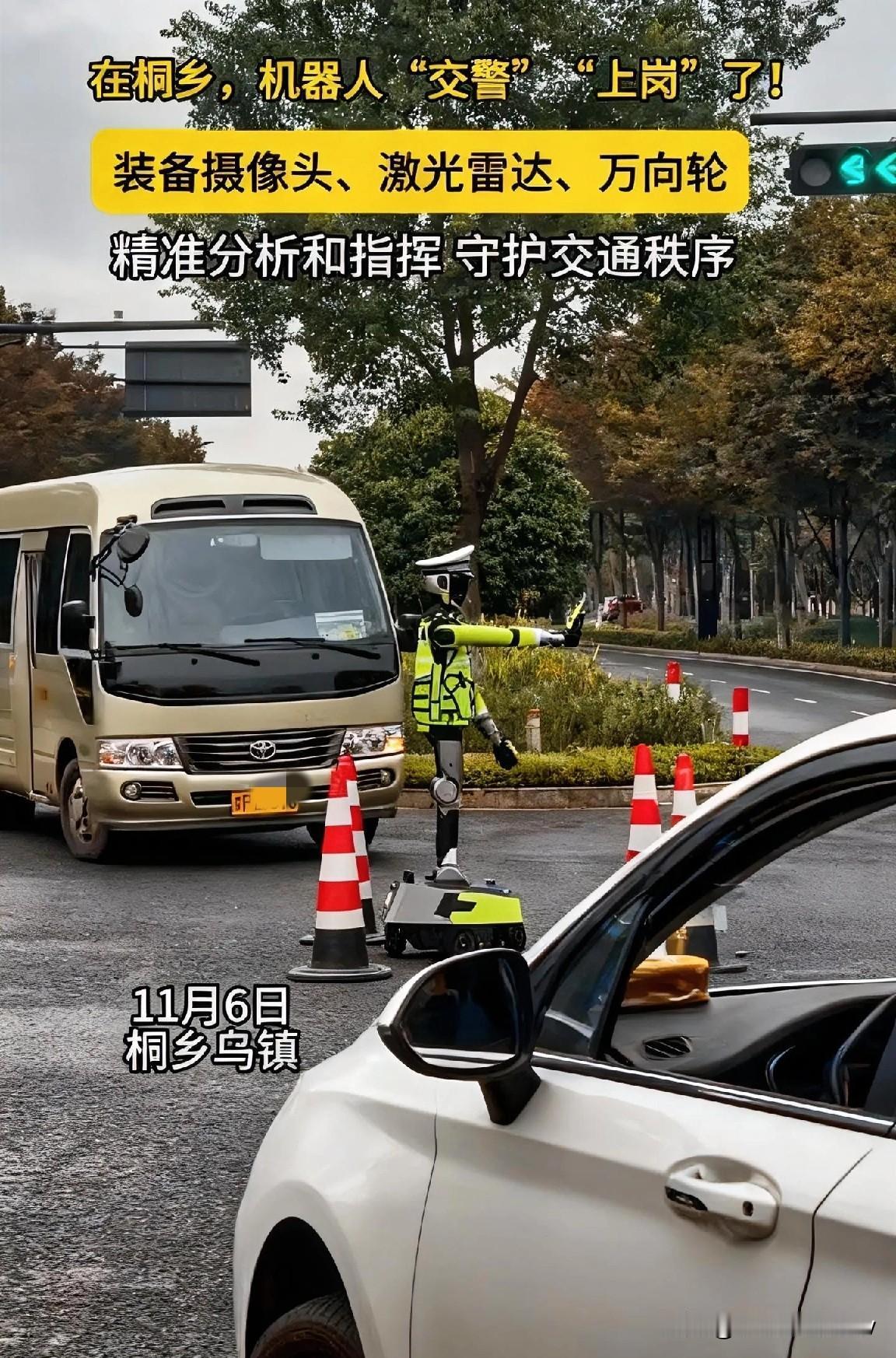 乌镇街头的一幕直接看呆路人! 乌镇街头现“硬核交警”!1米8的大高个站在路口挥臂指挥,手势标准到让老司机点头,凑近才发现竟是台叫“桐桐”的机器人,11月3日正式在云享路与智程路交叉口上岗后,已经成了路人打卡的焦点 。 红灯亮起时它稳稳举臂示意停车,绿灯一亮立刻切换放行手势,和信号灯实时联动不说,还能吹起清脆口哨提醒车辆,5个360度旋转摄像头+2个激光雷达,把路面情况看得一清二楚 。 桐桐可不是花架子,靠车路云系统接收车流数据,精准分析后动态分流,早晚高峰能顶三四名交警的工作量,现在一个路口1名交警+它就能轻松管控,7小时超长续航、6公里时速,360度旋转还不耽误自动避障 。 桐乡市公安局交通管理大队副大队长宋扬透露,这台“桐乡智警”解决了传统机器人雨雾天指挥精度不足的问题,轮式底座让稳定性和灵活性翻倍,还能语音劝导违法行为、上报路面隐患 。 2025世界互联网大会乌镇峰会期间,桐桐和AI智能眼镜、伴飞式执法记录仪一起护航,作为全国“车路云一体化”试点的桐乡,正把科技实实在在用到百姓出行里 。 你在路口偶遇过桐桐吗?觉得机器人交警比人工指挥更靠谱吗?如果你们城市推广这种智能装备,你最期待它增加什么功能?评论区聊聊~ 乌镇机器人