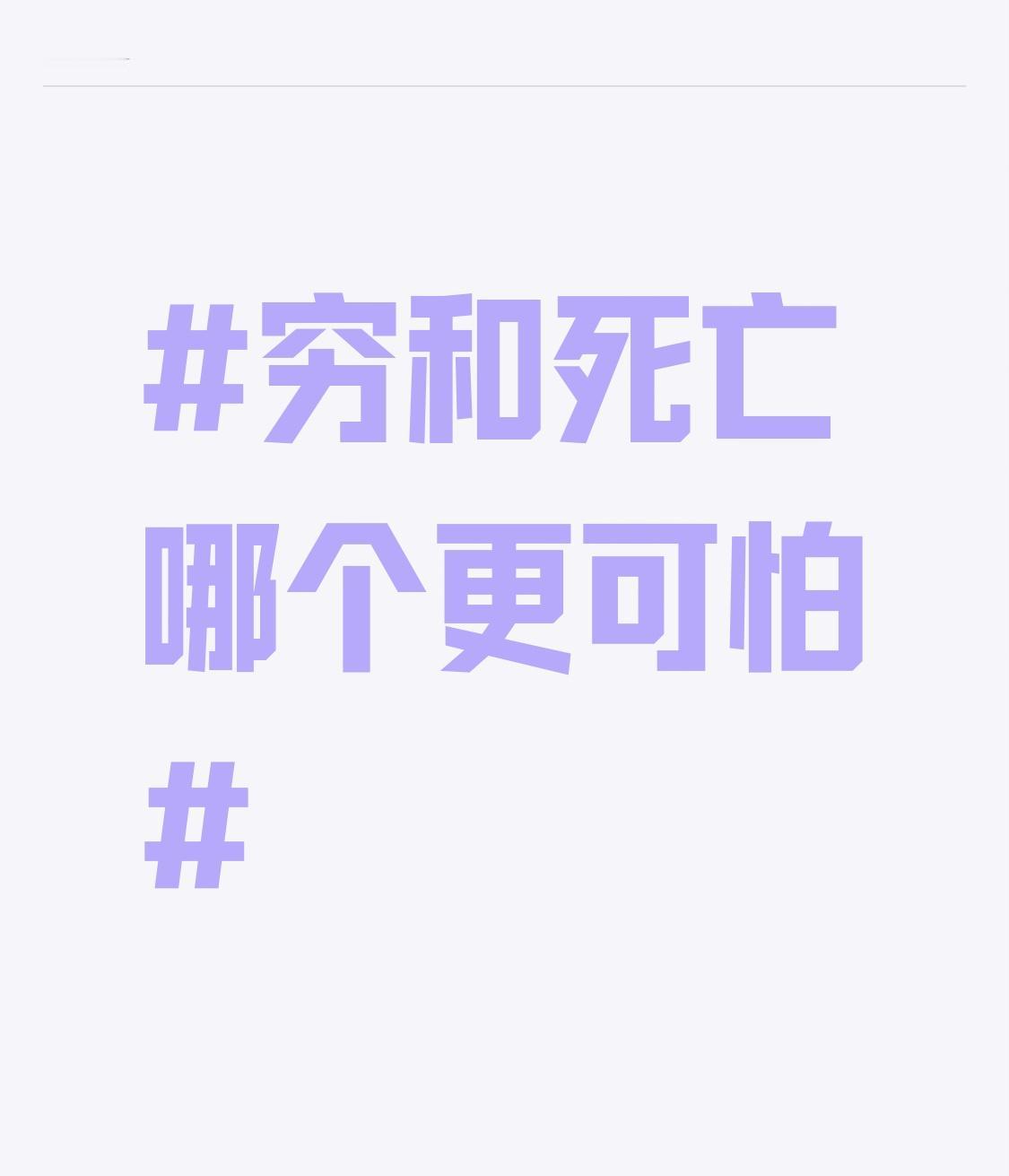 穷和死亡哪个更可怕,这问题就像榴莲和香菜,不同人感受不同。 从痛苦过程看,穷或许更折磨人。长期处于穷困境地,每天为温饱、住所发愁,像背着沉重枷锁前行。“贫贱夫妻百事哀”,穷会渗透生活每个角落,让人绝望。它还会剥夺生命的可能性,像无形牢笼,困住人的梦想。这时死亡甚至成解脱。 可从最终结局看,死亡更可怕。它意味着生命终结,没了一切可能。没钱还有生存希望,能努力改善。但没了命,就啥都没了。不过,这也因人而异,有人觉得没钱比死亡可怕,这取决于个人经历和价值观。