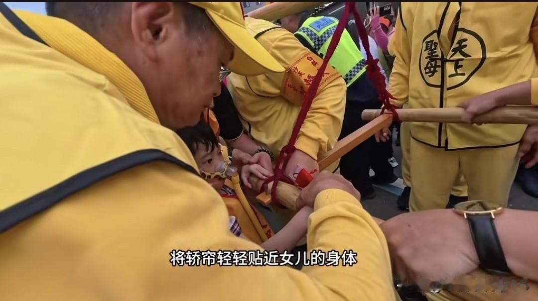 当医学走到尽头,信仰成了绝境里的生命守望 在白沙屯妈祖回銮的队伍里,有个戴着面罩身后氧气瓶比她还高的小女孩。医学可能已经给不了她更多希望,于是一家人把信仰当成了最后的稻草。 爷爷跪在地上,小心翼翼扶着孙女,满眼虔诚就盼着神轿能多停一秒。孩子爸爸抖着手把轿帘往女儿身边凑,生怕稍微用力就碰坏了这脆弱的小生命。 这时候,周围一下子安静了。抬轿的年轻人咬着牙,把小腿偷偷垫在轿底,汗水直往地上掉,却死死稳住轿身。他知道,多撑一秒就给这孩子就多一秒希望。 结束后,孩子手里那皱巴巴的红包被推了回去,谁都知道,那不是香火钱,是一家人凑的救命钱。轿夫们齐声喊着,把神轿高高举起,慢慢从一家三口头顶掠过,每一个动作都慎之又慎,就像托着这个家最后的盼头。 放眼望去,祈福的队伍长得看不到头。好多家长抱着生病的孩子跪在地上,额头一下下磕在路面上,带着哭腔的祈祷一声接一声。这不是愚昧,是绝境里对生命最本能的守望。他们不知道妈祖能不能治病,只是愿意相信这世上还有奇迹。