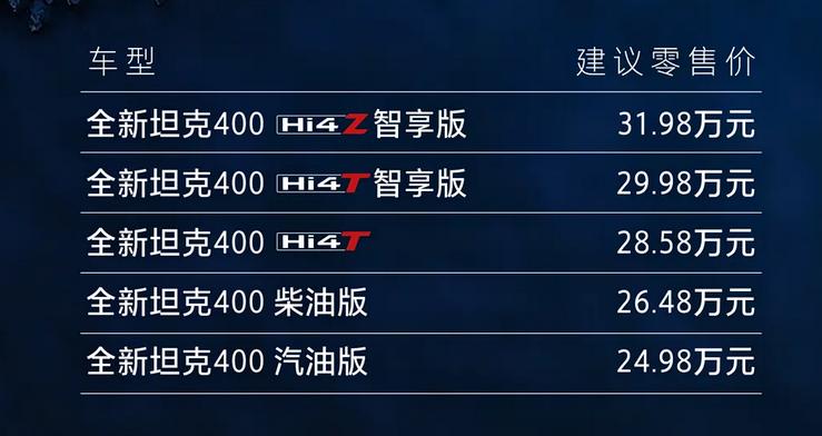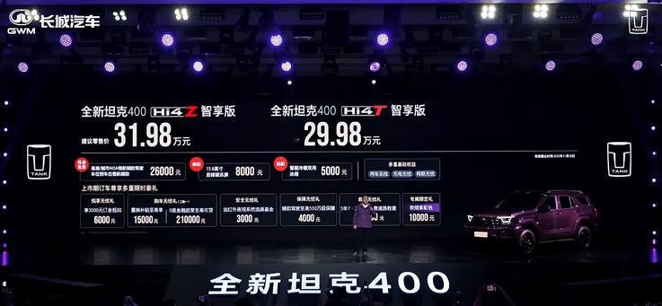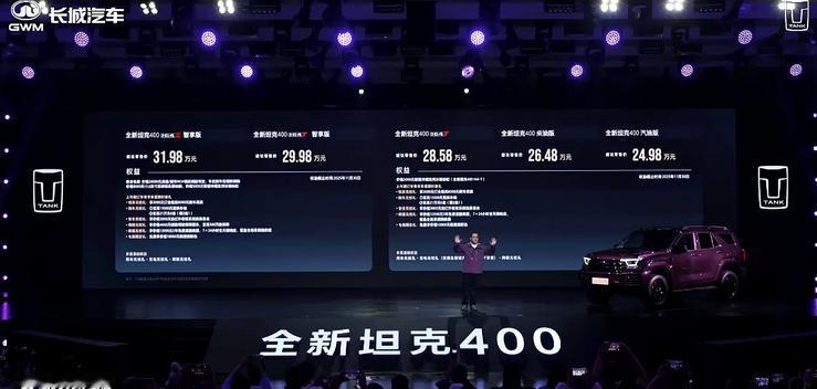 11月6日,坦克旗下中大型SUV新款坦克400系列车型上市,共推出5款配置,售价