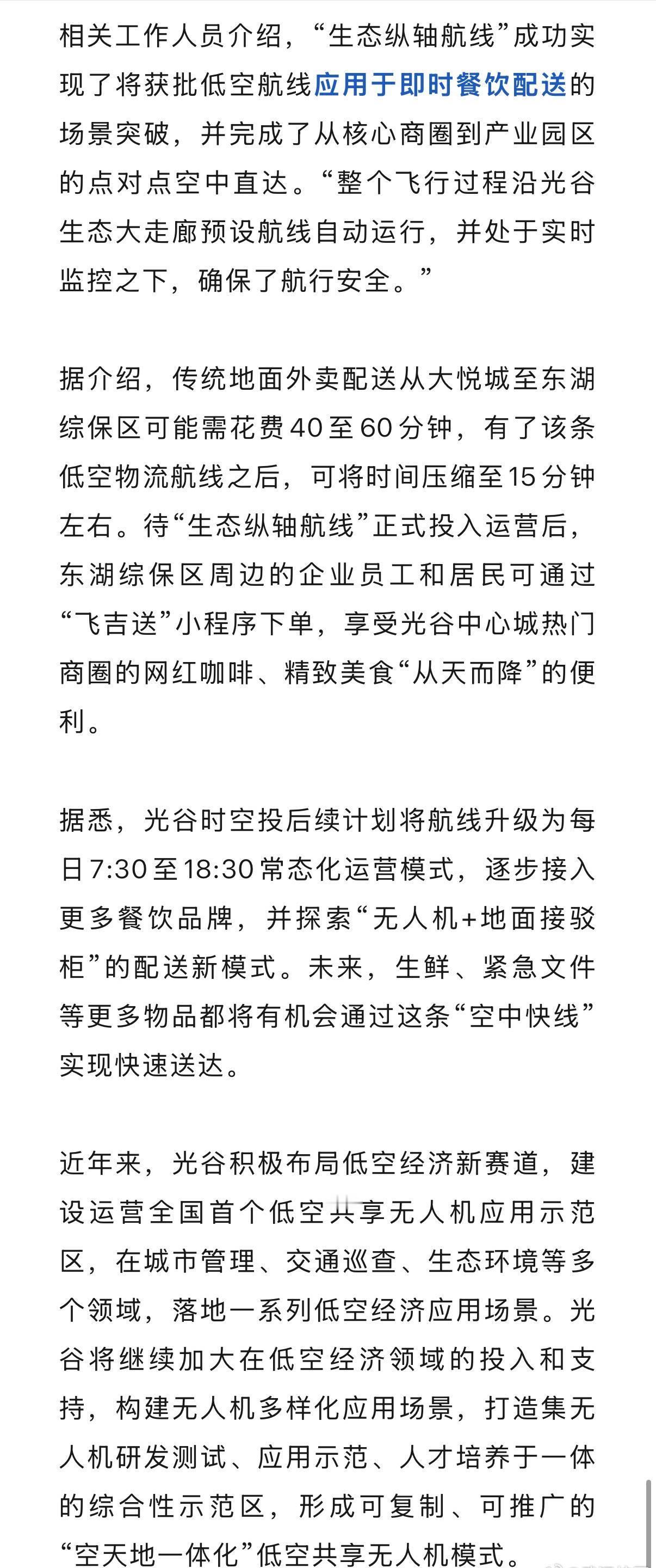 武汉速度再+1! 外卖无人机首飞成功,光谷上空多了一条“奶茶航线”☁️未来外卖,