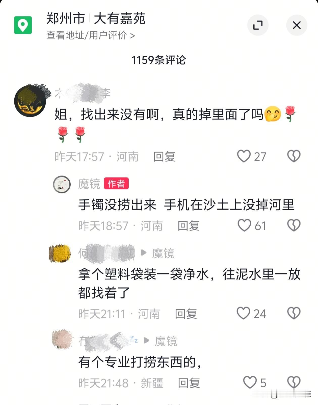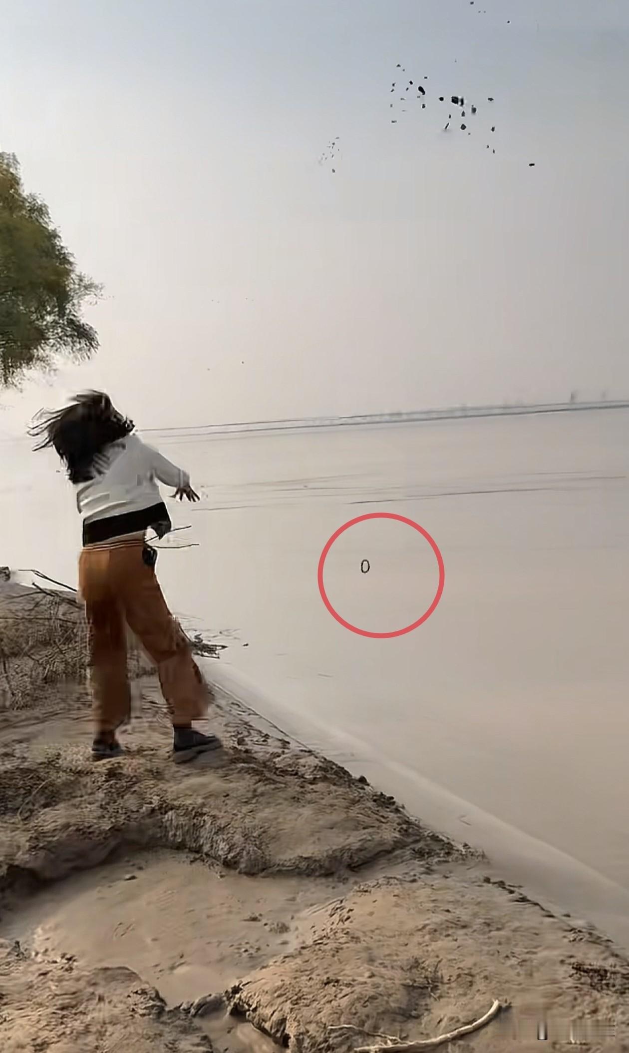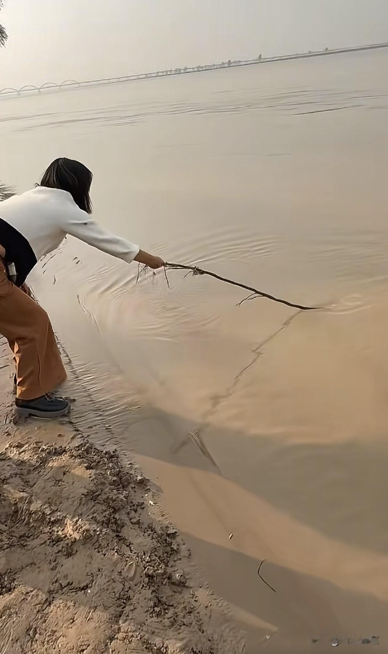 这下亏大了!女子往黄河里面扔泥土,不料自己手上的镯子也跟着掉了进去,女子找来木棍想捞上来。网友:这怎么找。 河南,女子和朋友在黄河边想拍一条浪漫视频,只见女子抓了一把泥土,用力往黄河里扔去,结果甩手的瞬间,手腕上的镯子也跟着掉了进去。 一开始女子还没反应过来,直到拍视频的朋友说有东西掉进去了,她才发现自己的镯子不见了。 黄河水很混浊,根本看不见镯子在哪,女子就找来了一根木棍,站在岸边四处够,想把它捞回来,不过尝试了很多次,最后也没成功。 有网友调侃,还好把视频暂停了,不然就真掉下去了。 也有网友表示,镯子掉落的地方离岸边不远,但是没找对位置,可以再试试。 女子说,觉得这事有点好笑所以把视频发出来了,大家看看就好,也算是给自己一个教训。