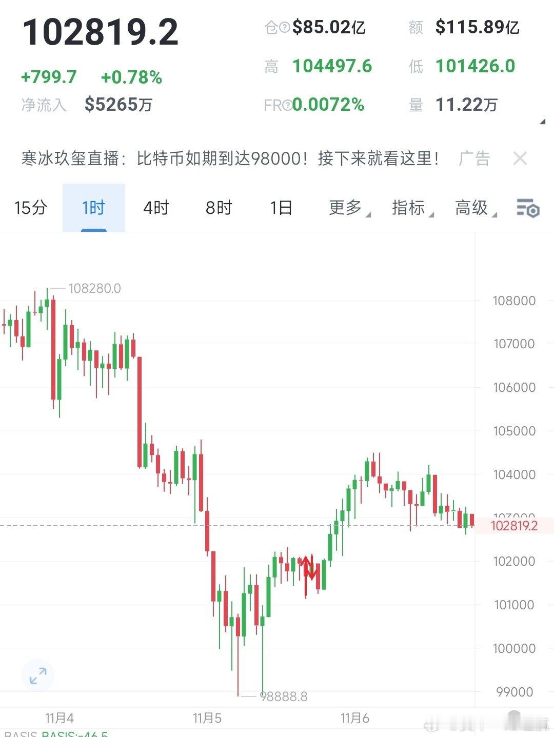 BTC(比特币):当前区间103900-103400,建议看空,目标位102000-101000,防守位104300