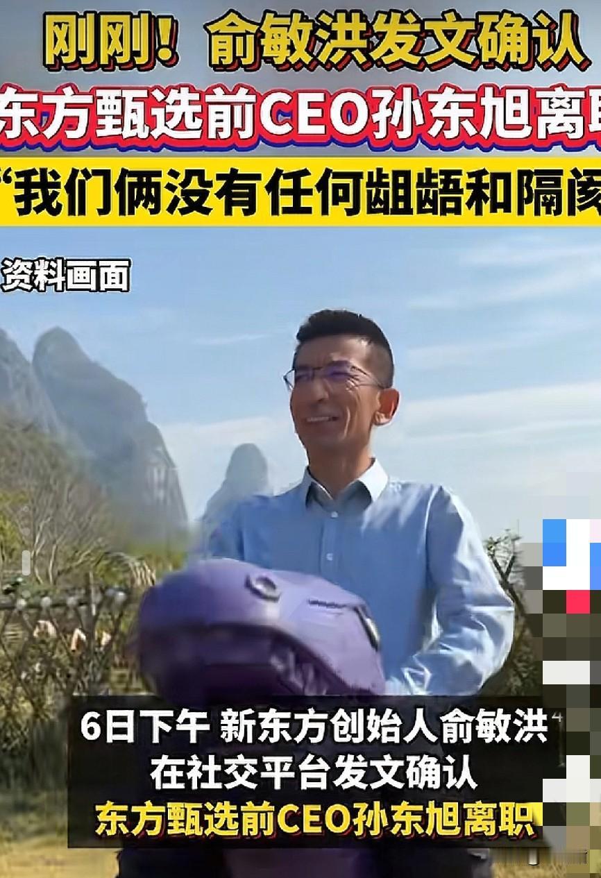 董宇辉走的时候,他绝对想不到自己也有那么一天,他就是东方甄选的CEO孙东旭。 这位曾经在直播间怒摔手机,给直播间的消费者莫名其妙开了一个会,还是批斗大会,话里话外都是你们这些粉丝,这么宠着董宇辉,他不要面子的吗?最后导致东方甄选陷入舆论风波。 孙东旭作为高管,在东方甄选最火的时候,股票早就赚到财富自由的地步。但是他和俞老师两个人,经营理念不同,一个要求供应链标准化。一个呢,喜欢线上式山姆模式,也就是产品为王道,质量要过硬。两个人产生分歧的时候,就注定走不长久了。 曾经东方甄选的核心人物,三个人已经离开两个人,只剩下俞老师强撑着,当初孙旭东缔造了东方甄选,也发现董宇辉,但最后发现,驾驭不了董宇辉,都是功不可没的人才啊。 不知道如今孤身一人的俞老师,怎么带动东方甄选继续前进呢? (图片来自网络视频)