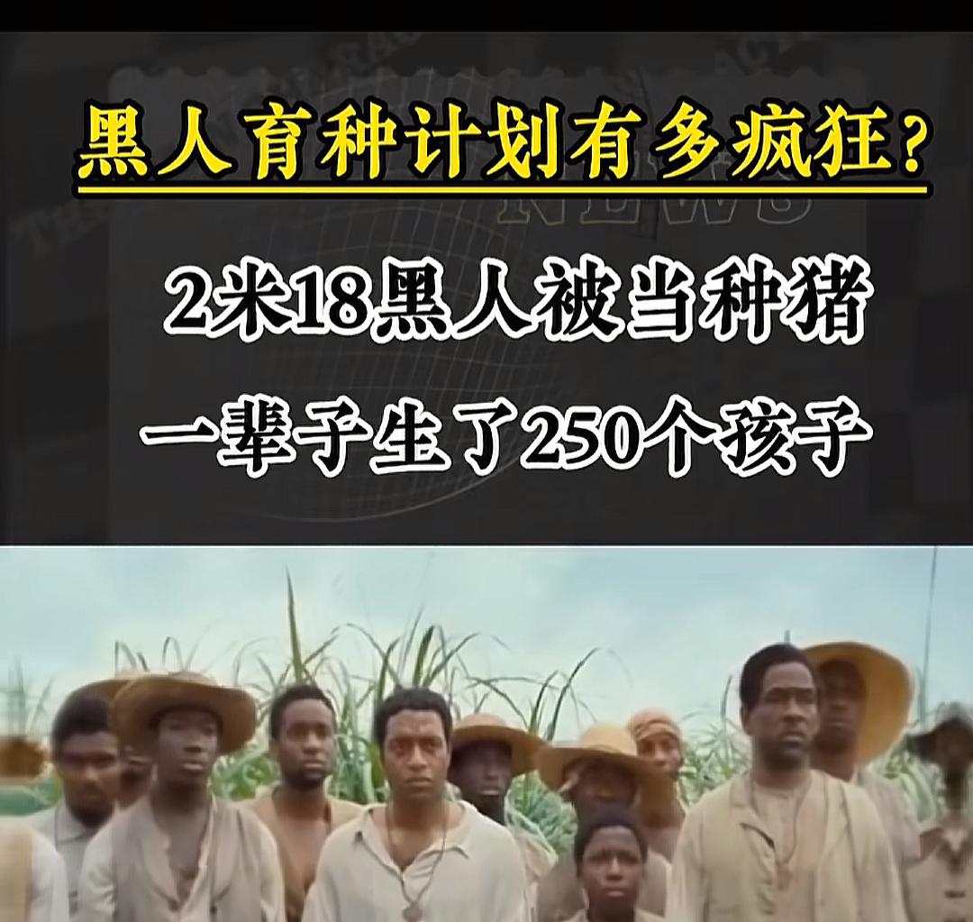 黑人育种计划大家听过吗? 简直惨无人道,毫无人性! 在18世纪的时候,随着棉花种植园越来越大,美国奴隶主需要大量黑人干活,但购买黑人太贵了。 这些农场主就想到了一个毫无人性的办法——“育种计划”。 奴隶主挑选身强体壮的黑人作为“种”,让他们每天与6名以上女性发生关系,女性则从十三四岁就被迫开始生育,一直生到不能生为止。 比如,在巴西,一位名叫弗朗西斯科·达库尼亚·布埃诺的奴隶主买下了身高2.18米的罗克·弗洛朗西奥,将其改名为帕塔·塞卡,让他作为“种”与众多女黑人配种。 塞卡一生和其他女人生下了241个孩子,直到1865年美国南北战争结束,黑人获得自由。 而巴西则在1888年废除奴隶制,相关的黑人育种计划才结束。 万恶的资本家,万恶的旧社会,太可怕了!