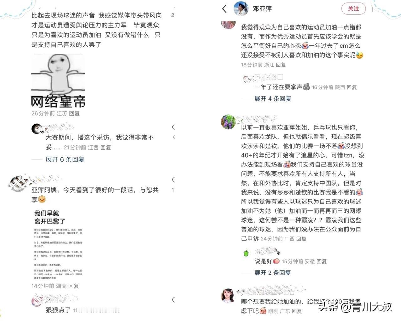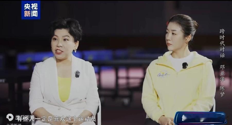 央视采访了邓亚萍和陈梦,邓亚萍只是帮陈梦出了个主意,建议她继续打球,结果她被网暴了! 邓亚萍对陈梦说: 如果你对乒乓球还有热爱就去打吧, 三五年之后, 你再想法, 身体也不允许了! 邓亚萍说的公正, 建议也合理, 没想到被网暴了, 不过还是有很多的网友支持了邓亚萍, 让我们相信, 人间自有真情在!