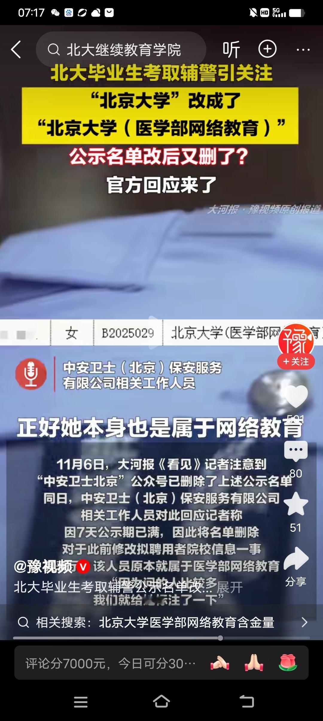 炒的沸沸扬扬的北京大学毕业生当辅警,其实是误会一场。那个所谓的北京大学,只不过是网络教育。这样的话,应该就顺理成章了。欢迎大家留言文明交流!
