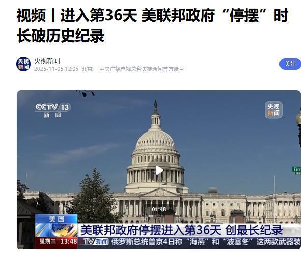 果然被我说中!美国正式宣布了!2025年11月4日,美国正式进入“停摆”状态35天,这已经是美国历史上第35天的“停摆”,同样追平了美国历史上“停摆”的最长纪录——35天。美国国会参议院进行了第14轮投票,两党依然僵持不下,这也导致了“停摆”状态下的普通民众苦不堪言。 美国联邦政府停摆的根源在于国会预算的分歧,说白了就是民主、共和两党在钱怎么花的问题上吵得不可开交,谁都不肯让步。 按照美国的规矩,联邦政府要花钱必须得国会通过拨款法案,要是到期没谈拢,政府手里没了钱,除了军队、医疗急救这些保命的核心部门,其他机构就得歇业,这“停摆”的摊子就这么铺开了。 这次能僵持到35天追平纪录,全因为两党在几个关键议题上拧成了死结。民主党死死咬住医保补贴不放,非要让国会延长相关拨款,毕竟全美两千多万人参保都指着政府补贴兜底,要是断了这钱,明年保费得涨一千美元,低收入家庭根本扛不住。 可共和党不乐意,他们心心念念要搞“精简政府”,想趁机裁掉一批联邦雇员,还打算削减一些民生开支,把钱往国防和其他他们看重的领域挪。 两边诉求差得太远,参议院来来回回投了14轮票,每次都卡在60票的通过门槛上,毕竟共和党虽然占了参院多数,可53比47的席位差距,根本凑不够能推进立法的票数。 就这么耗着,国会倒是热闹,可老百姓的日子早乱成了一锅粥。最揪心的是那些联邦雇员,一万多名空管和五万多机场安检员被迫无薪上班,家里要还房贷、要养孩子,薪水拖了一个多月没着落,不少人只能下班去开网约车、送外卖补贴家用。 纽约地区近九成空管都没法到岗,全美一半的空中交通管制机构都缺人,华盛顿、达拉斯的机场好几次临时停飞,11月2号一天就有四千多架次航班延误,五百多架次直接取消,再过阵子就是感恩节旅行季,照这架势非得出大乱子不可。 民生领域更是雪上加霜。11月1号起,覆盖四千两百万美国人的食品救济计划直接停发补贴,这些人里大多收入低于贫困线,全美八分之一的人都指着这钱买吃的,尤其是非洲裔群体,日子过得更难了。 医保那边也没好消息,新一年的参保登记刚启动,就因为两党没谈拢补贴,保险公司直接把明年的保费涨了不少,本来能享补贴的两千两百万人,这下得多掏不少冤枉钱。还有六万五千家小型承包商,政府欠他们的款拖了一个多月没结,不少小老板都快撑不下去了。 经济上的亏空也越来越大,国会预算办公室早就算过账,停摆4周就得损失70亿美元,要是再拖到8周,损失能飙到140亿。更要命的是这些损失好多都回不来,四季度GDP增长率直接被拉低了一两个百分点,本来就疲软的就业市场更是雪上加霜。 可两党根本没心思管这些,反而忙着互相“甩锅”,民主党说共和党不顾穷人死活,共和党骂民主党故意绑架预算,谁都想把责任推给对方,好在选民面前赚吆喝。 其实这事儿早有苗头,这些年美国两党越来越极化,以前就算吵得凶,最后还能坐下来谈妥协,可现在“停摆”成了他们博弈的工具,都想靠拖时间逼对方让步。 上回破纪录的35天停摆还是2018年,当时是为了边境墙的钱,这回换成了医保和开支,本质上都是党派利益优先于民众需求。民调早就说明了问题,六成多受访者觉得两党都不顾民众利益,国会支持率跌到了15%,近八成美国人都不认可国会的工作,可这些民选官员好像根本看不见。 说到底,这哪是预算分歧那么简单,根本是美国的治理出了大问题。国会的预算体系早就积弊重重,可没人真的想改革,反而把“停摆”当成了政治筹码。 35天的纪录背后,是无数家庭的焦虑,是经济的失血,更是民众对政府的失望。两党还在国会里耗着,可普通美国人早就受够了这种折腾——毕竟日子是过出来的,不是吵出来的,再这么闹下去,伤的可是整个国家的根基。
