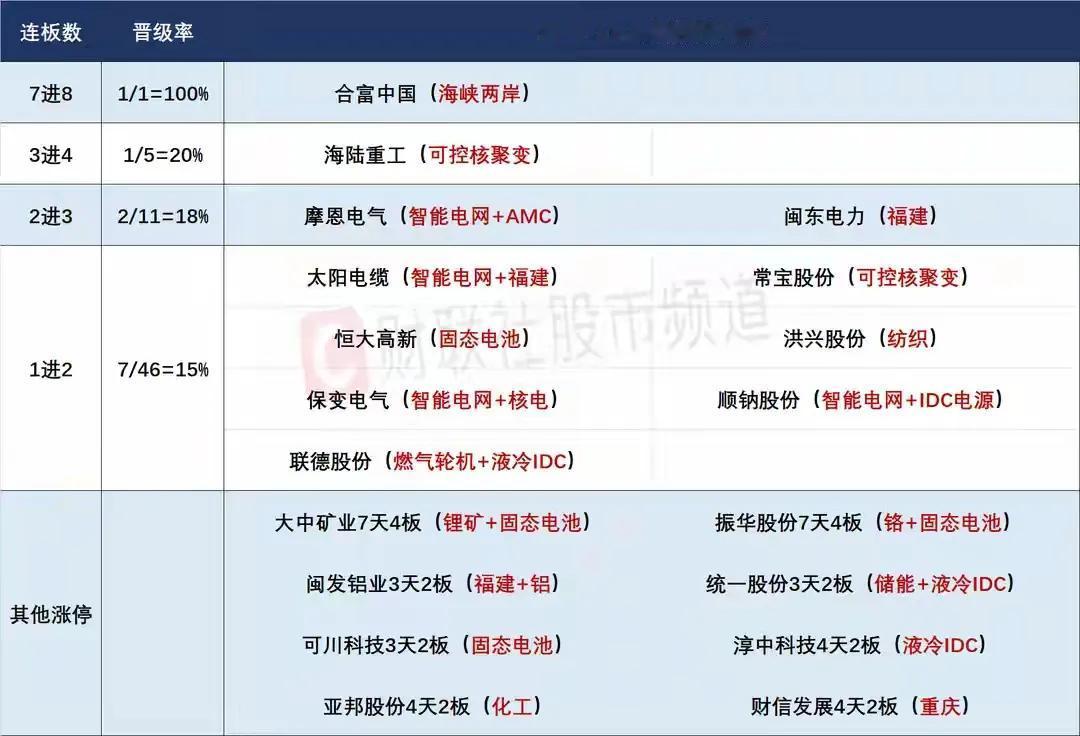 11月7日盘前预案:放量重回4千点后市场可能会降降温,妖股的表现反而值得关注! 1、昨天的市场随着科技的反攻,走出了比较强势的高开高走,最终是明显的放量突破形态,沪指重回4千点,量能再次站上2万亿,这样的表现是非常强势的,但我们可以看到沪指离前期高点并不远,而创业板的差距还非常大,这样的话指数就很难直接走出冲关表现,那么适当的降降温或许会更好一些! 外围美股低开低走大幅收跌,中概股小幅调整,但是A50下杀明显,这样的表现对于A股早盘肯定会有一定影响,低开会是大概率的,而这个位置一旦低开,出现低走的概率是非常大的,所以今天一定要注意市场开盘的下杀风险,特别是跟美股相关性非常大的科技方向个股,是可能会有较大幅度的调整! 2、短线情绪在市场集体走高的情况下反而受到了明显的影响,所以可以看到前期最强势的平潭最终封死跌停,但是市场最高标合富却顶住分歧最终成功走出来,而今天一旦市场整体走弱,那么再次出现抱团妖股的概率就会加大,那么合富开盘的表现就非常有看点了,如果它能够红盘开后迅速拉升走高,那么它的表现还是比较值得期待的,反之,一旦竞价偏弱且开盘不迅速修复的话,合富出现兑现的概率就偏大,那么短线情绪整体就会受到很大的影响,连板接力就不是很适合了! 平潭虽然跌停,人气依然非常足,盘后大多数人是明显看空,这就存在非常大的预期差,但是从今年龙头断板的次日表现看,不管是之前的首开,还是近期的大有、盈新、时空,断板次日都是给到充足的兑现空间的,所以对于平潭看空是毫无意义的,有人气在,一旦板块修复,再加上今天大盘调整的预期,这些结合在一起,平潭至少会给到安全出逃的机会,毕竟市场总龙头很难会连续跌停收场的,特别是一旦合富继续强势,对于平潭就会有直接的带动作用,而平潭因为昨天没有跟上,合富的负反馈反而对它的影响会非常有限,所以整体上来说,对于平潭的绝对看空小胖是保留意见的,除非开盘低开低走去闷杀跌停,否则应该会有从容的兑现时机! 3、电力方向强分歧,但是摩恩是比较强势的一字板晋级,同身位的还有T字板晋级的闽东,不过闽东之前是叠加海峡概念走出来的,所以对于这个方向来说,摩恩的表现是这个方向整体持续性的最大看点,但是昨天整个板块虽然竞价非常强势,开盘后有却出现明显分歧,前排走出了持续性,后排兑现的走势非常明显,那么今天对于这个方向,走出继续分歧的概率很大,那么在个股的聚焦上,依然要以前排为主,所以摩恩如果继续一字板,反而没有接力价值,或许高开后盘中出现板块修复的共振封板值得期待,但是它能不能去接力更多的取决于合富的反馈,毕竟市场最高标一旦负反馈,对于高标接力情绪会产生明显影响! 特变整体趋势并不差,虽然尾盘跌破分时均线,但是最终竞价是有一定抢筹的,高位成交了超200亿的表现说明这只个股是有多数实打实的资金介入的,那么它的趋势就值得期待,所以它如果能够稳住趋势,整个电力相关方向的持续性还是会有所保证的! 保变是几个二板中最强势的,而且也是辨识度最高的,昨天顶住分歧全天封死一字板,但是这只个股毕竟流通市值超200亿,连续顶一字板并不现实,一旦今天竞价电力相关方向分歧明显,保变出现开板放量是大概率的,那么它能不能出现承接继续走出来会是一个比较大的看点,从市场高低切看,只要特变趋势不错,保变的板上承接还是非常值得关注的! 4、电解铝价格持续上涨带动了整个铝金属方向的大涨,和之前炒作的贵金属、铜类似,铝在近期是有持续表现的,那么在昨天的高潮后,这一方向或许会有持续性! 中铝作为绝对中军出现涨停,一旦它能保持住强度,对于整个铝板块会有带动作用,那么几只活跃的市值相对活跃的小盘股就很容易被量化顶出来,从情绪上看,常铝和闽发的概率最大,前者是反复活跃的个股,后者蹭到了海峡方向的热点,所以这个方向足够强,常铝和闽发竞价就肯定会有超强表现,那么竞价开的最好的或许就是这个方向的绝对龙头! 5、机器人方向卷土重来,万向是早盘最亮眼的首板个股,但是板块真正的情绪带动是午后的方正上板,所以这个方向这两只个股的表现是非常值得期待的,一旦它们走出持续性,对于整个机器人方向至关重要,或许这个板块要王者归来,毕竟三花的8个点大涨代表着趋势中军有共振,所以只要板块给力,万向、方正开盘的强势表现非常值得关注! 6、钍基熔盐堆方向带动了整个可控核聚变方向走出了持续性,但是相关性最高的个股海陆是连续一字板形态,它作为次高标这样的表现确实很难给到好的接力位置,毕竟错过了二板的放量,这只个股就很难再给到合适的买点了,但是它的表现对于整个可控核聚变方向会有明显的促进,而昨天也确实带动了整个板块,但是前期强势股却没有跟随的,只要它继续一字板,那么板块前期的热门个股或许会有二波的机会! 文中的内容仅为分享和交流,不作为实际操作建议!