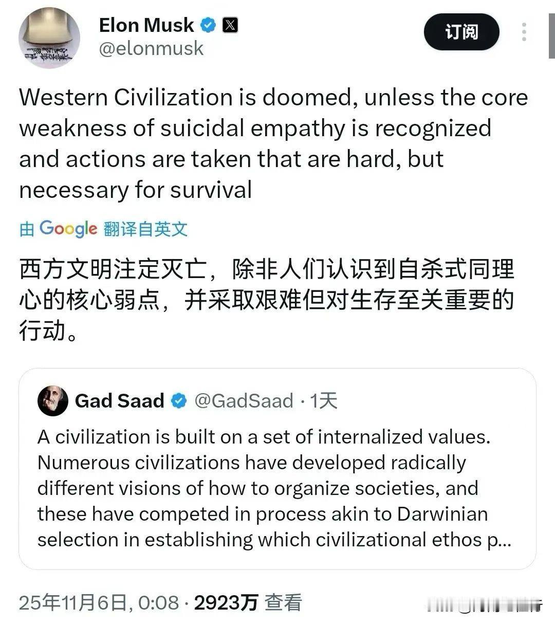 年薪一万亿美元的马斯克真敢说,西方文明注定灭亡!!中美关系