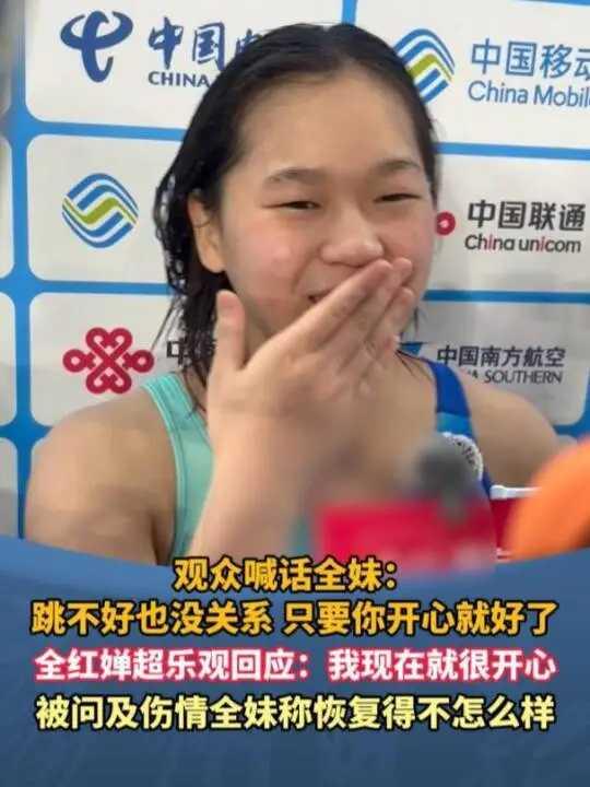 这一届网友还是明事理的,他们不完全是以成败论英雄。 比如,全红婵在双人跳成绩不理想,网友都知道她是带着伤病和发育关参加的。所以,对她只获得第五名也没有任何的不适,反而安慰她道,跳不好没关系,只要开心就好! 体育竞赛,向来人们只支持胜者,只赞美金牌获得者。像这样生怕全红婵不高兴,纷纷对她安慰,鼓励,以前还是少有的。 本来有点失落的全红婵,也捂着嘴笑着回应,我现在就很开心。