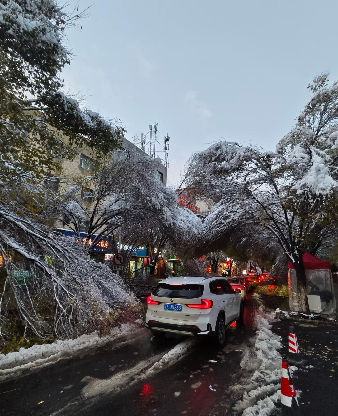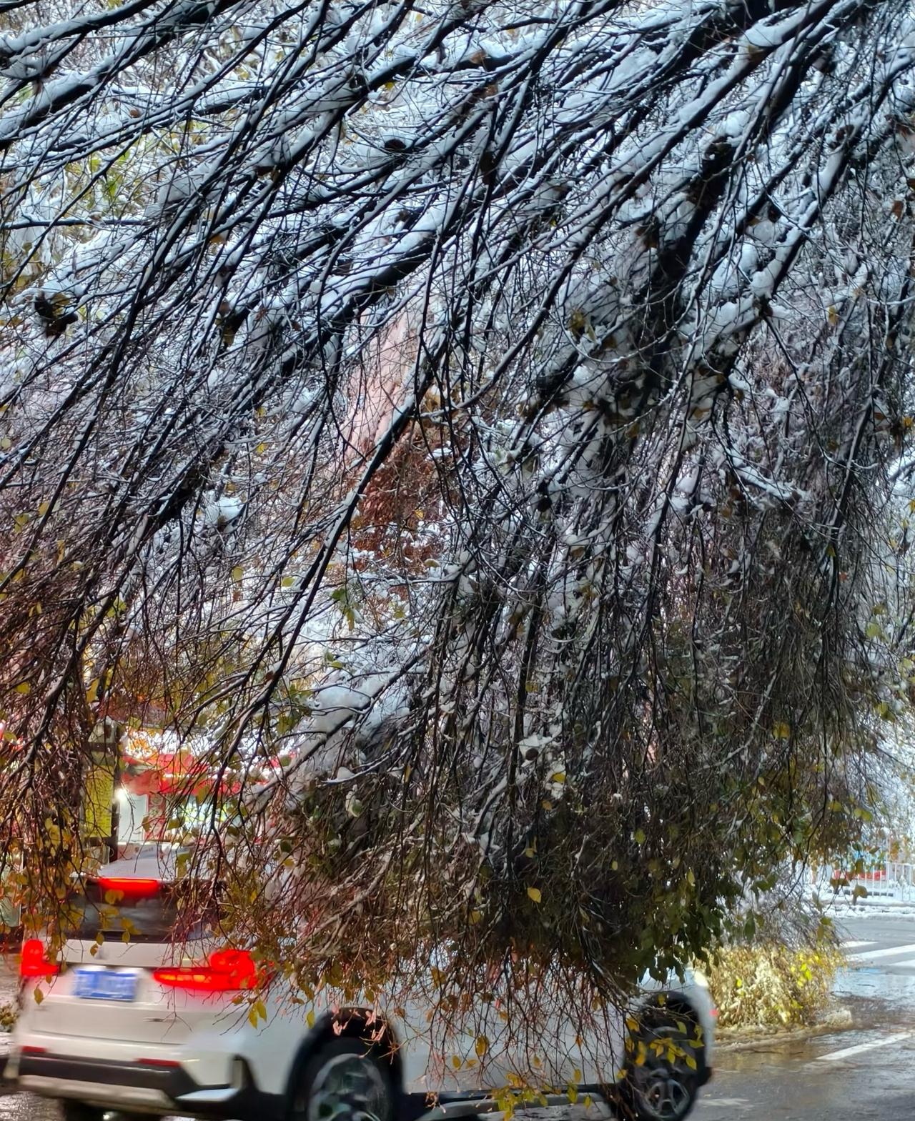 一场暴雪过后的乌鲁木齐。 入秋以来下得最大的一场雪, 压垮了路上很多的树枝。 前几天刷到很多学校因为下雪放假, 今天路上这么一看还挺明智的。