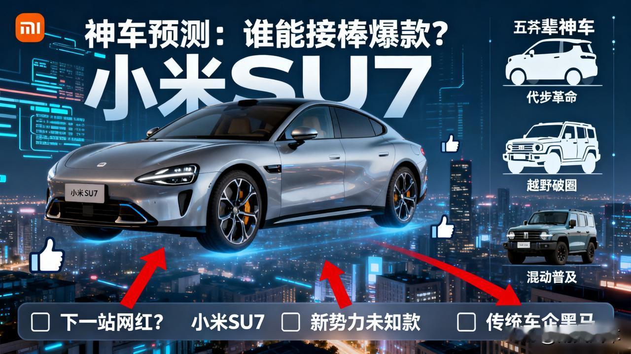 预测一下,下一款“网红神车”会是谁? 从五菱宏光MINI EV到坦克300,再到比亚迪秦PLUS,爆款总有规律。下一款能引爆全网的,会不会是小米SU7,还是即将发布的某某车? 来大胆预测一下! su7小米汽车 秦l落地价 秦PLUS 秦plusev 五菱车mini 秦ev 秦plus