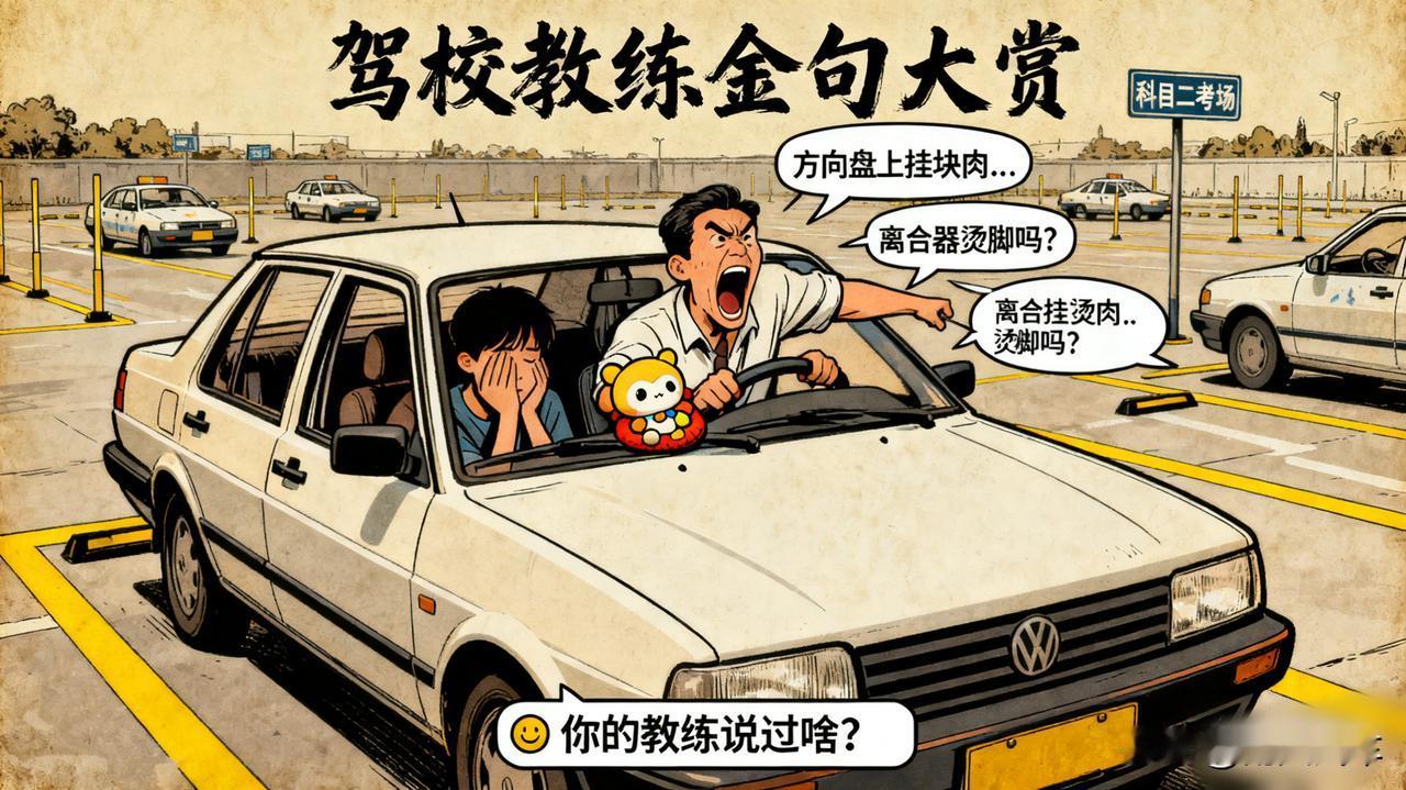 考驾照时,你被教练骂得最狠的一句话是? “方向盘上挂块肉,狗都开得比你好!”、“离合器烫脚吗?松那么快!”……那段“悲惨”又搞笑的时光,现在都是回忆。 来评论区晒晒你的驾校金句! 驾校搞笑日常 驾校教练语录 幽默学车段子 学车幽默段子 汽车驾考语录 学车口诀 文化差学车
