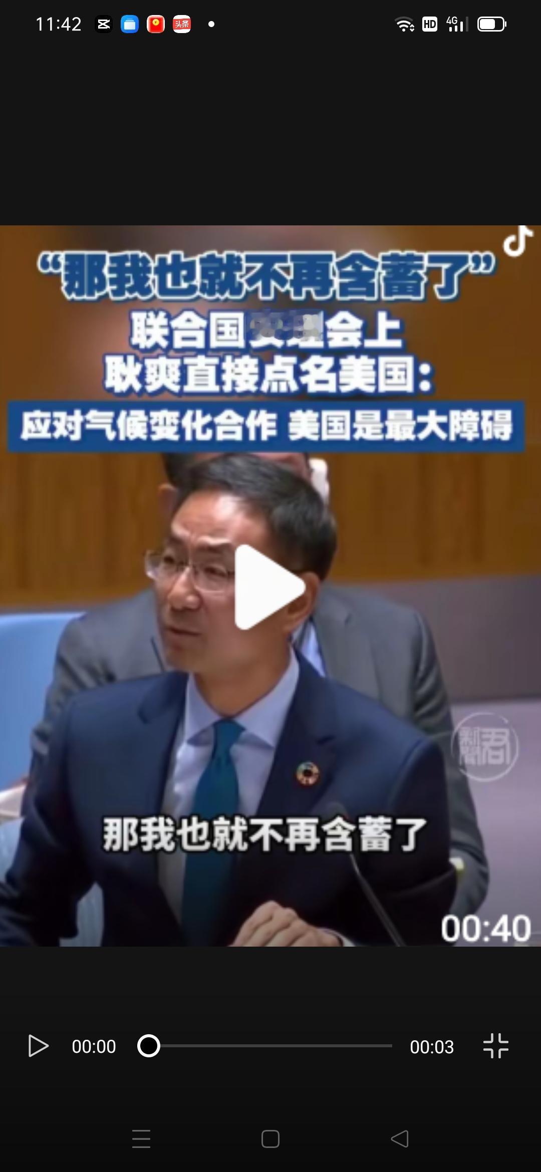 “既然美国代表不那么含蓄,直接点名了,那我也就不再含蓄了”,这就是耿爽!耿爽6日在安理会气候与安全问题公开会上驳斥美国代表对中国的无端指责。 耿爽指出,美国是全球历史累计温室气体排放最多的国家,还公然称气候变化是人类历史上最大的骗局,并两度退出《巴黎协定》,已经成为全球应对气候变化合作最大的障碍。耿爽的反击就是一个字“爽”!美国最没资格指责中国,最没资格讨论温室气体排放! 在联合国舞台,敢点名反击美国,也就是中国。美国无端指责中国,就是嫁祸于人,就是让全世界围攻中国。温室气体排放集中在美西方工业化时期,美西方不检讨自己,还有脸转嫁到中国身上,是可忍孰不可忍。中国目前温室气体排放量是最大,但中国可是有14亿人口,平均下来,我们也就是中游水平。耿爽的反击,有理有据,大涨中国人的志气。 美国联合国代表 联合国发言人 耿爽不再含蓄