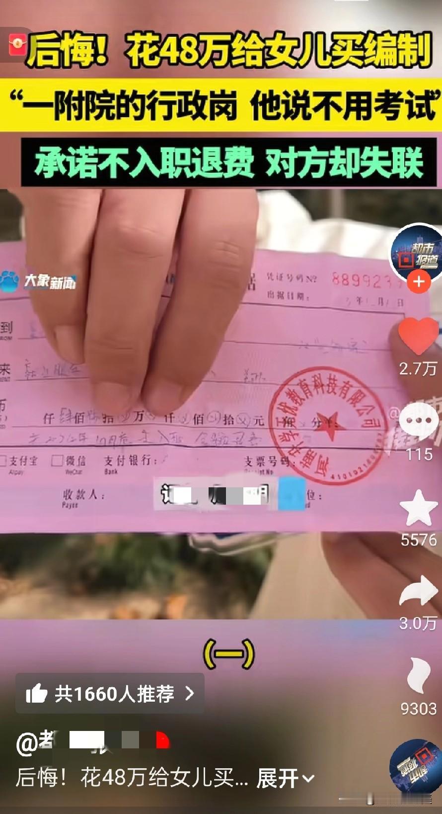 一个编制真的有辣么香么?近日,网传郑州一女子为了买一个编制,一次性给某人转了48万,没想到对方收到钱后却玩失踪,女子这才意识到受骗!跑到派出所伤心地大哭! 咱先不说受骗这回事,48万啊!不是个小数目,普通人干一辈子也攒不到这么多钱,你却拿它去买一个编制,就算对方不是骗子,给你编制安排好了,请问你得干多少年才能还请这笔钱,它,划算吗? 再一个,都2025年了,你还相信花钱能买到编制,封编必考,择优录取,国家在这方面是公开透明的,并且接受人民群众的监督,还有人傻傻地以为花钱就能买到编制!你不受骗谁受骗?编制 编制的女生 编制的骗局