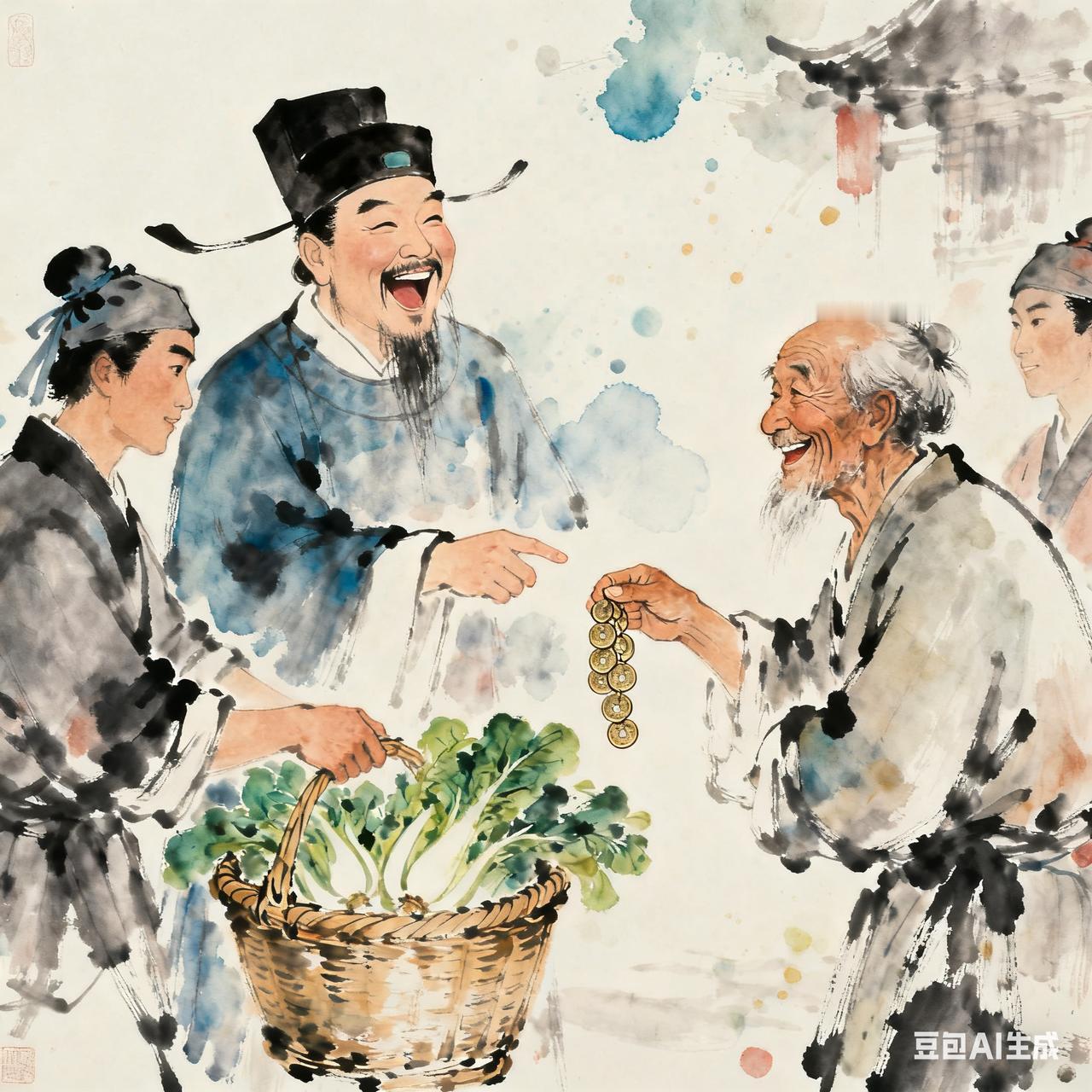古代笑话 知府大人到镇上体察民情, 见卖菜老汉蹲在路边捆韭菜, 想考较一番,踱过去问:“老丈, 你可知‘四体’是哪四体?” 老汉直起身,拍了拍裤腿的泥: “大人,这我清楚——挑担子的肩, 捆菜的手,走路的腿, 还有踏踏实实干的这身力气, 不正是四体?” 知府愣了愣,身后的幕僚刚要开口, 被老汉拦了: “大人您说的‘四体’是书上的道理, 我这‘四体’是养家糊口的本事, 您说哪样离不得?” 知府被问得怔在原地, 瞅着老汉筐里水灵的菜, 又看看他手上磨出的茧, 忽然朗声笑道:“你这话说得透! 是我把学问看僵了!” 走时,特意让手下买光了老汉的菜, 还多给了一串铜钱。