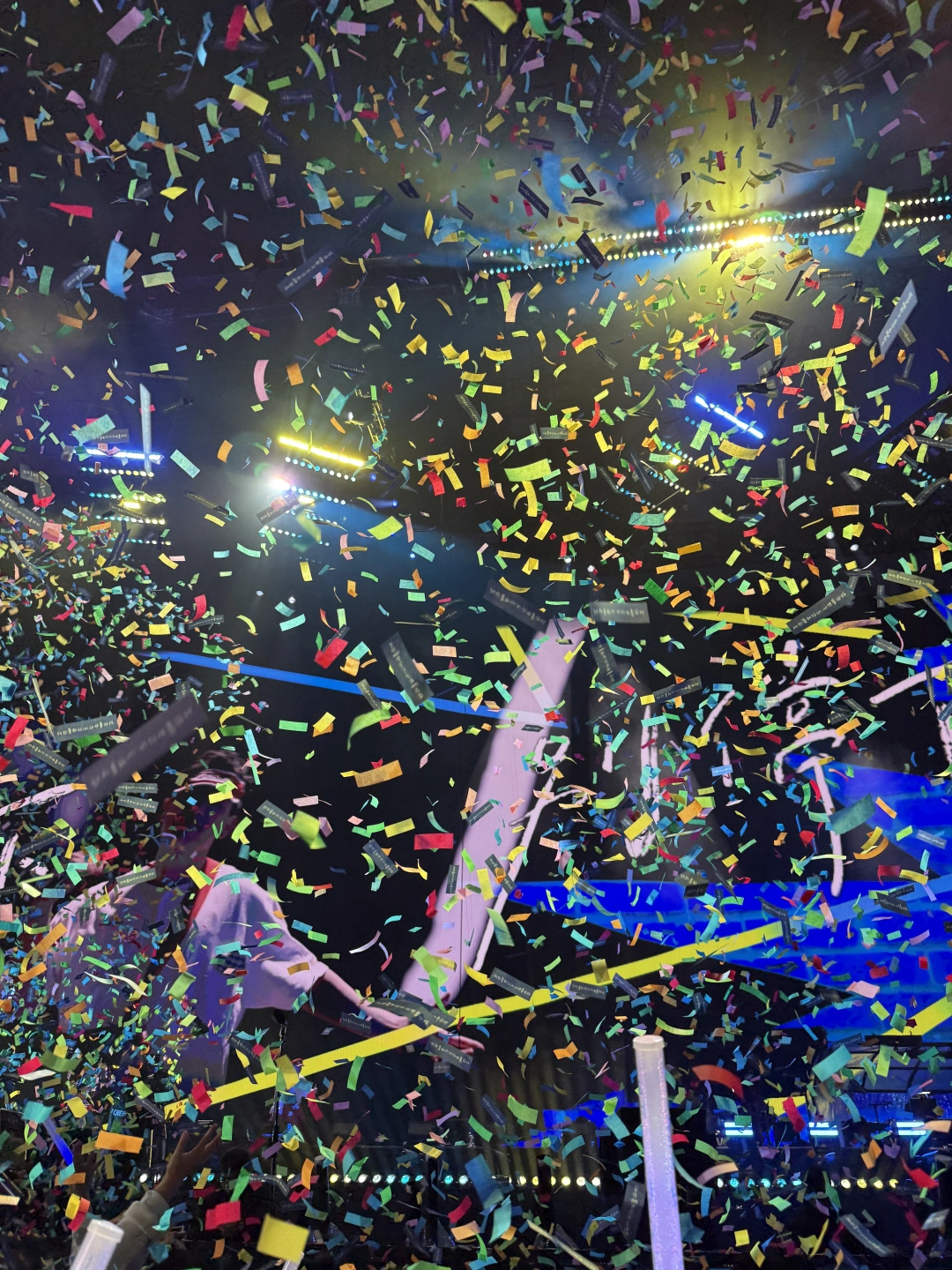 没去前刷到彩带是每场不一样的可爱图案 收集癖非常大的我心想希望自己能空中抓到几张(因为我觉得自己是大人了 不想像小孩儿一样在地上捡)没想到压根儿不用抓 回去之后我的衣服包里全是……