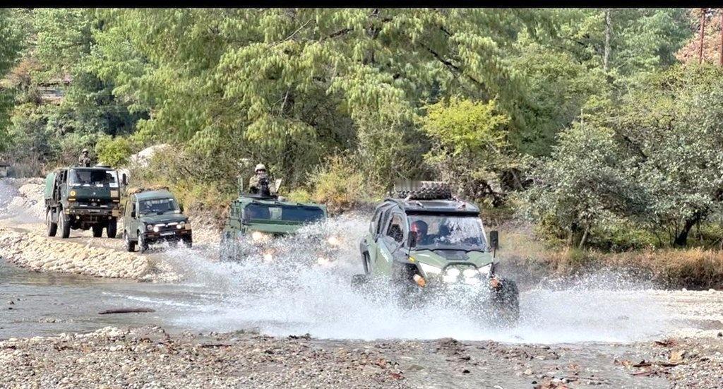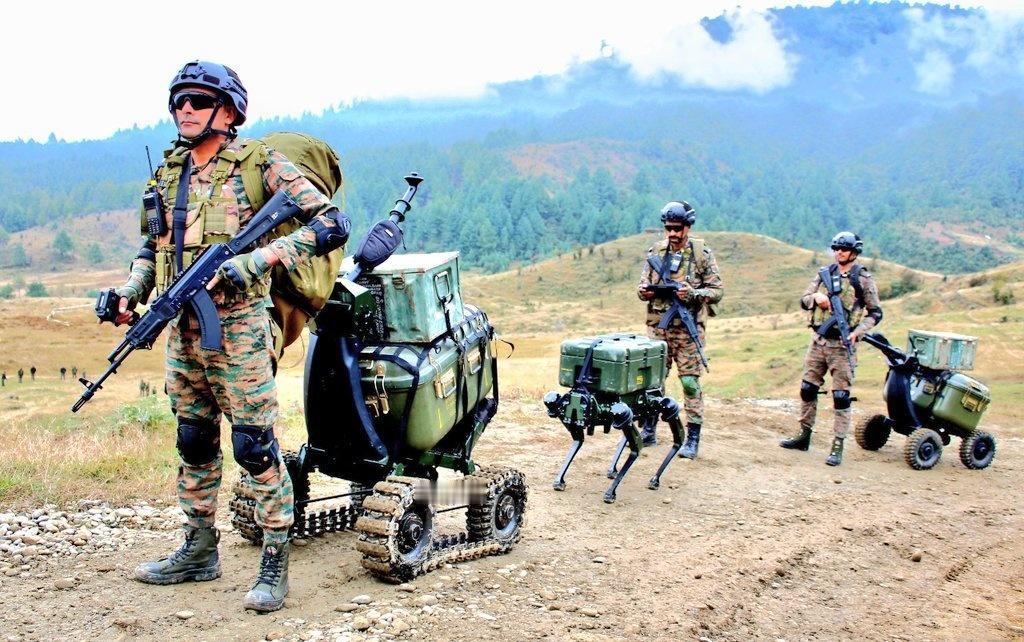 印度在Poorvi Prachand Prahaar三军联合军演中展示的单兵动力小拖车、遥控机器狗、新型高原全地形车,以及充满印度特色的滑索突击。