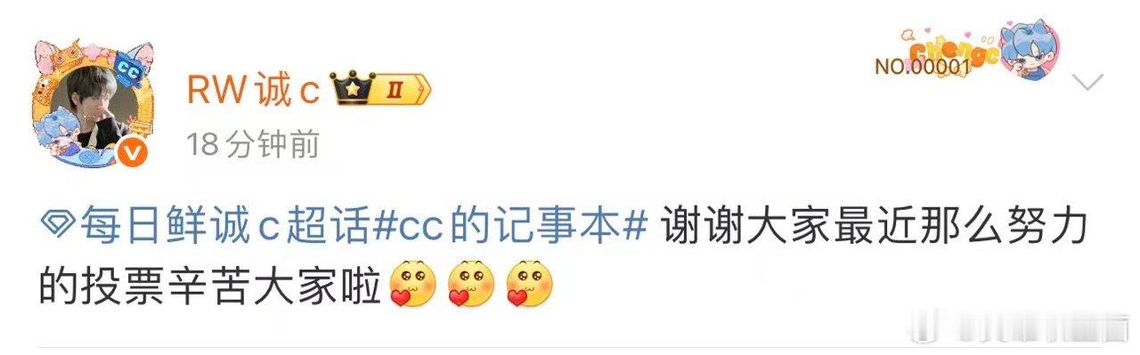 诚c感谢粉丝为自己投票