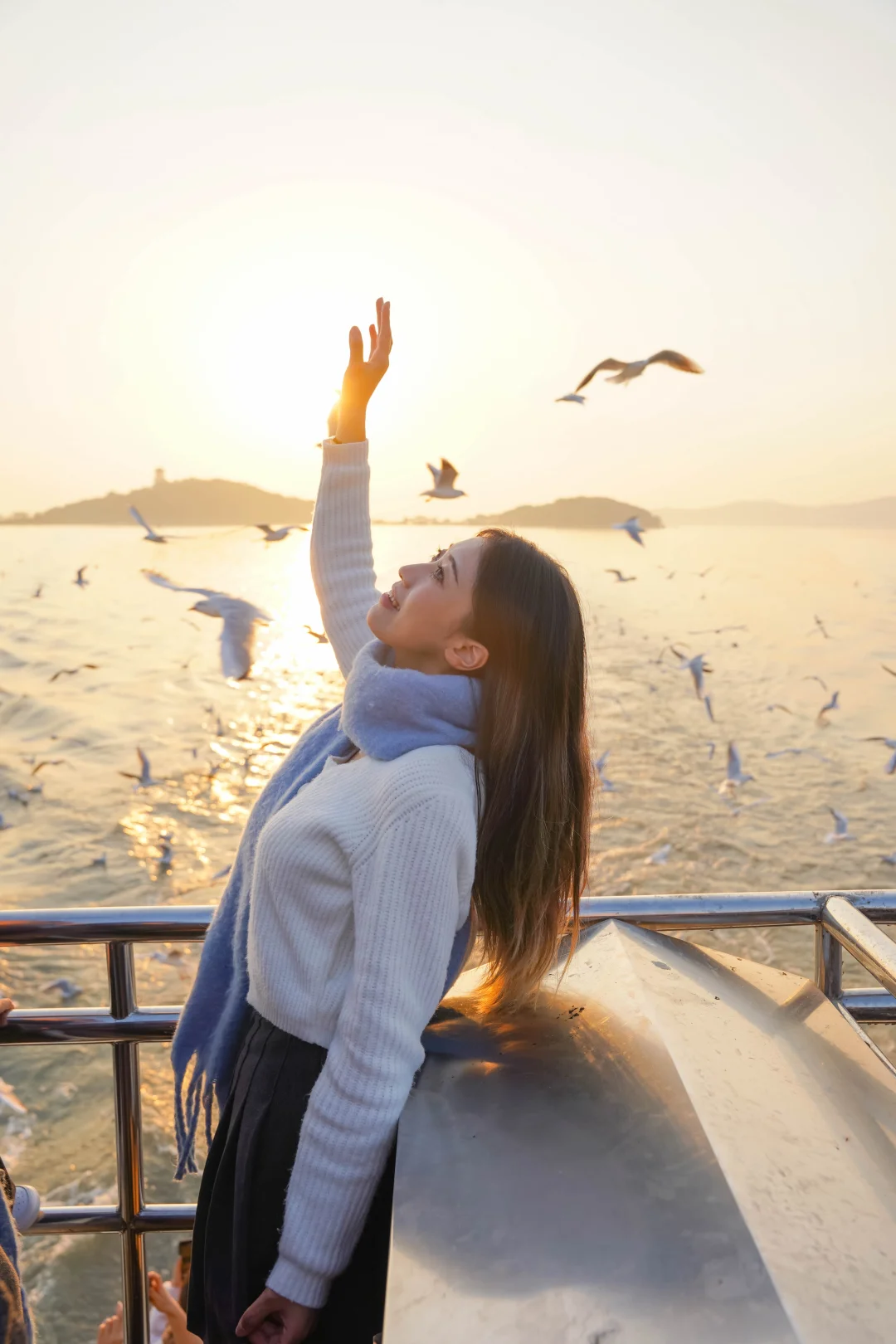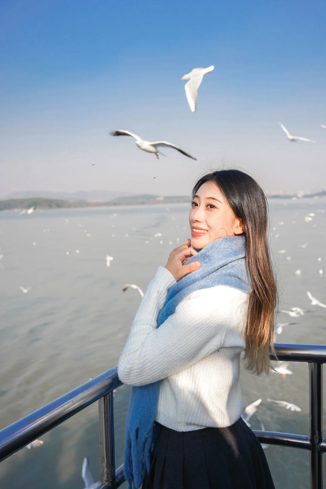 冬日来鼋头渚看橘子海啦,刚从无锡回来,新鲜出炉的2024鼋头渚赏红嘴鸥攻略❗️赶紧码住‼️ 🚗交通: 上海出发,可自驾可高铁,抵达无锡站后可打车导航至“鼋头渚充山大门” 🕤出行时间: 每年zui佳赏红嘴鸥的时间为11月下-12月,天气不会太冷,同时还能看到金灿灿的水杉林。 🚶‍♀️游玩路线: 抵达景区充山大门—进门走100-200米能看见水杉林—乘坐景交车或观光车🚙—太湖游船码头—坐船赏红嘴鸥—太湖仙岛市集—返回码头—太湖佳绝处看日落🌄 📷拍照攻略: 1⃣️ 一定要选择晴天☀️这样才能看见日落,才会见到橘子海(建议提前查天气) 2⃣️ 在🚢船上拍摄可以准备面包🍞,引海鸥来吃,容易出片! 3⃣️ 登船后尽量选择船尾,视野开阔,站在船尾的桅杆拍摄,可以避开人群 4⃣️ 过程坐船尽量赶16:20左右的班次,可以拍到落日余晖,漫天飞舞的红嘴鸥,配上橘子海绝了❗️太湖的日落浪漫极了👍 👗穿搭建议: 1⃣️ 冬天在船上风大,会比较冷,建议穿个厚外套,拍照时可以脱掉 2⃣️ 白色毛衣+蓝色围巾hin出片!有冬日恋歌的感觉❄️ 3⃣️ 还可以准备白色护耳,或者白色手套🧤 ⚠️温馨提醒: 1⃣️ 太湖仙岛市集上有不少特色美食,建议可以登岛后尝一下,还有网红猫咪老默迎接你哟🐱 2⃣️ 在太湖佳绝处附近看见有肖像漫画🎨,还挺值得试一下的,小姐姐画的非常用心,推荐留作纪念