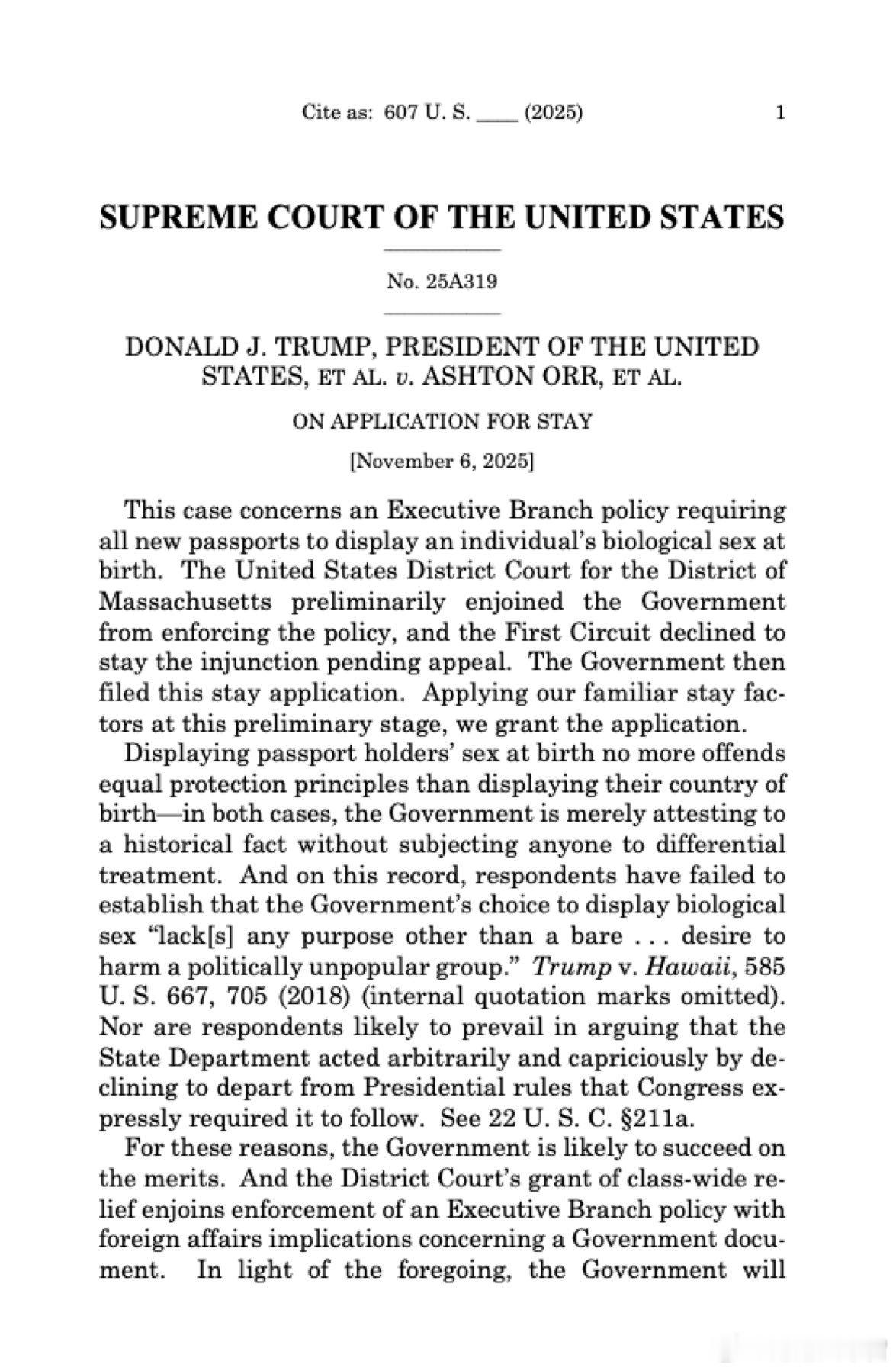 突发 - 川普胜诉:最高法院维持川普总统的行政命令,确保护照签发以生理性别为依据,而非自我认同!